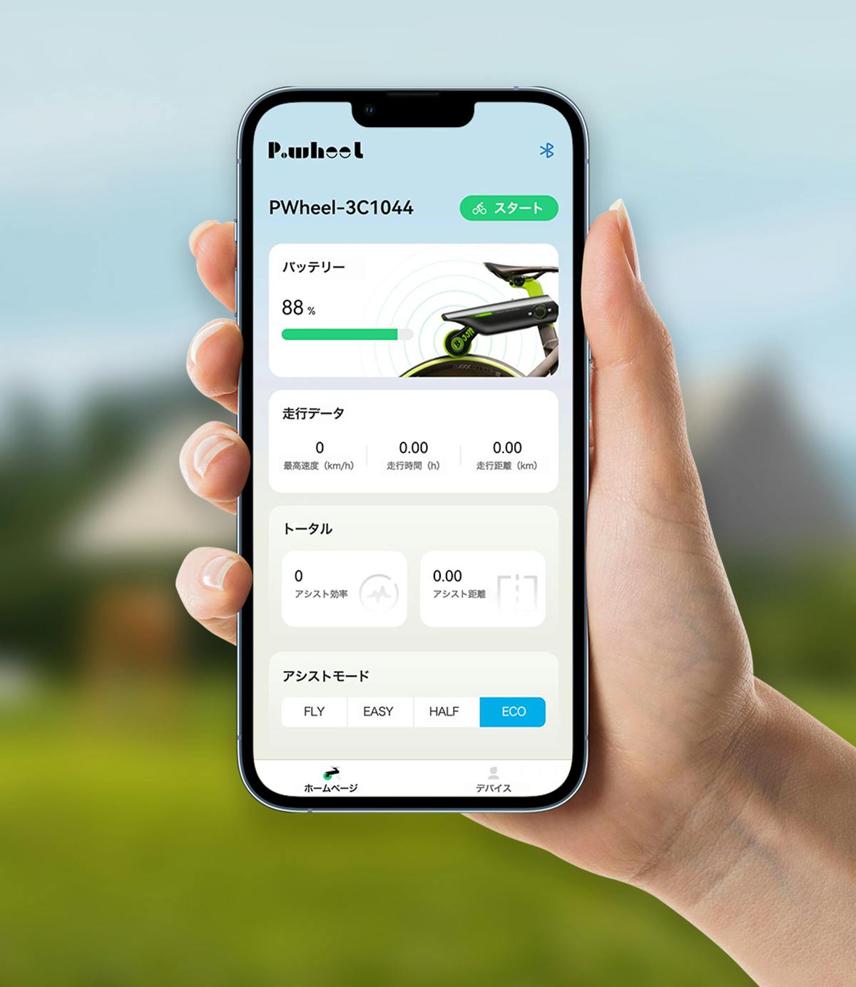 Bluetoothで専用アプリと接続することができます。接続後、アプリでアシストモード(FLY, EASY, HALF, ECOという4種類のモード)を調整できます。さらに、APPにはサイクルコンピュータ機能も備わっており、現在の速度、時間、距離などをリアルタイムに表示します。