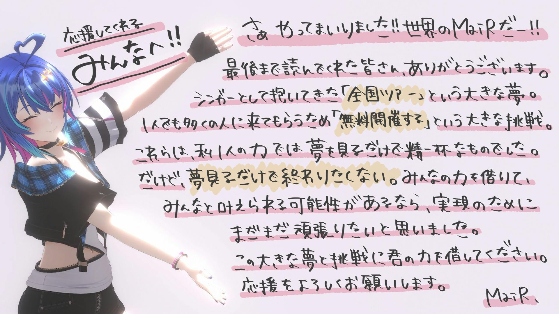 MaiR史上初『全国無料ライブツアー』の開催を目指します!