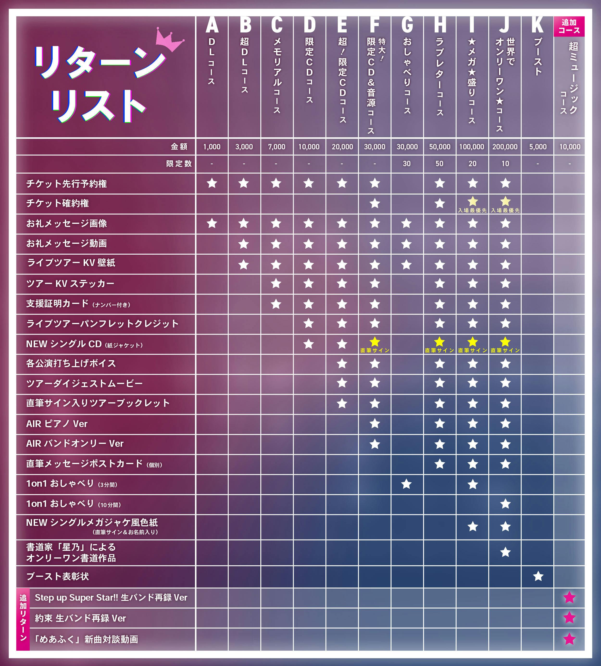 ライブツアーパンフレットにお名前を掲載させていただきます。