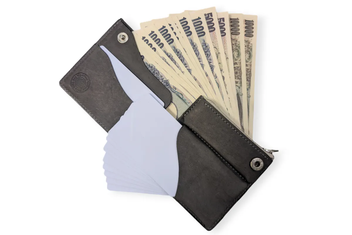 メインポケットLは右手で財布を持ち、左手で紙幣やコインを扱うことを想定しています。