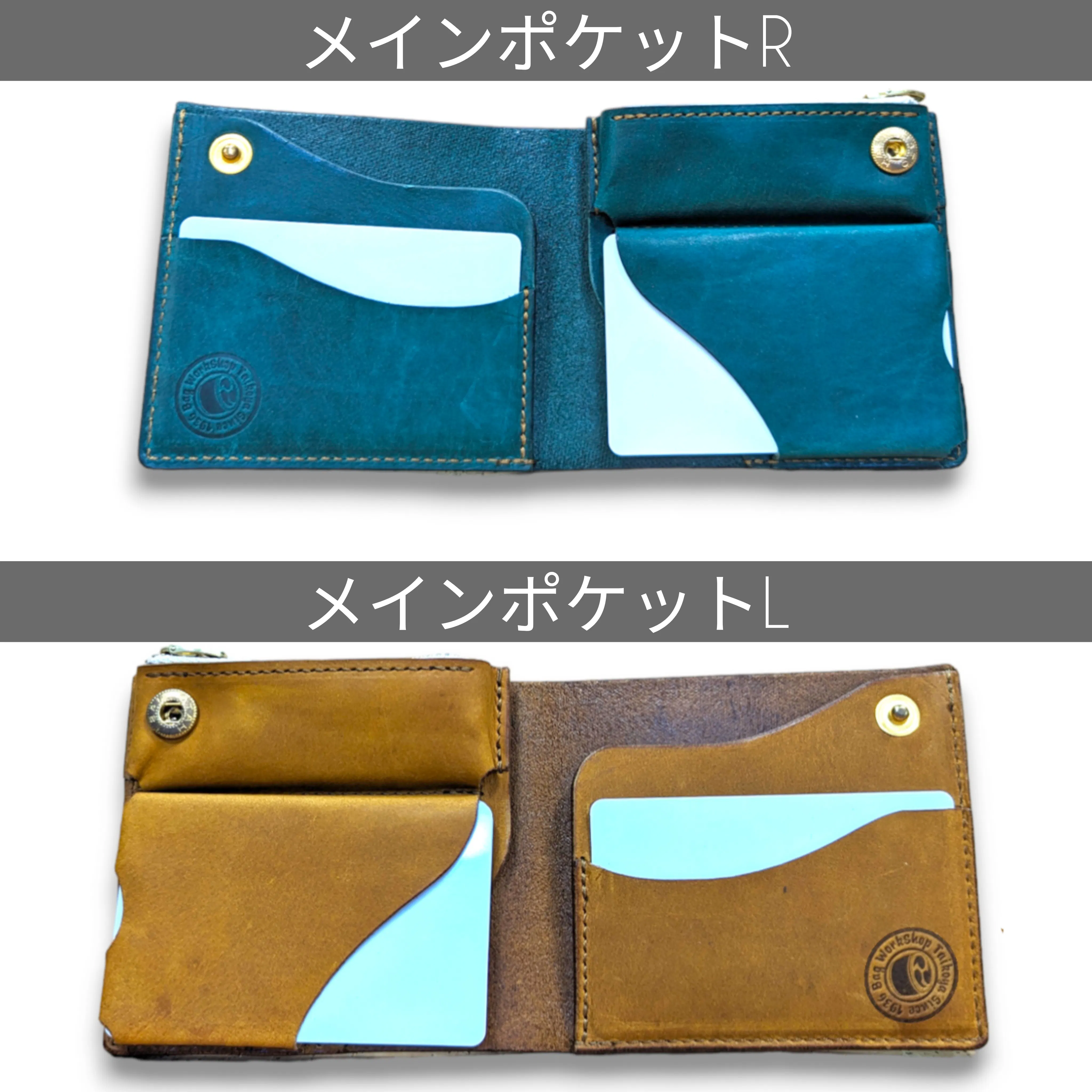 メインポケットRは左手で財布を持ち、右手で紙幣やコインを扱うことを想定しています。