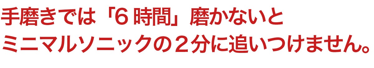 ミニマルソニックは2分間で44,000回磨けますが、手磨きで44,000回磨くには6.1時間も必要です!圧倒的な時短&効率化&生産性アップを実現するミニマルソニックを是非、お試し下さい!
