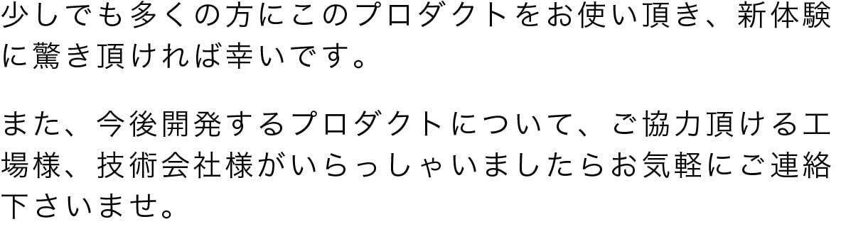 私達は日本の電動歯ブラシ普及率をなんとかしたいと考え、ミニマルソニックを誕生させました。口腔内のケアは大変重要なものであるにも関わらず、そのツールの進歩はまだまだです。ミニマルソニックが少しでも日本の電動歯ブラシ普及のきっかけになれば大変嬉しいです。