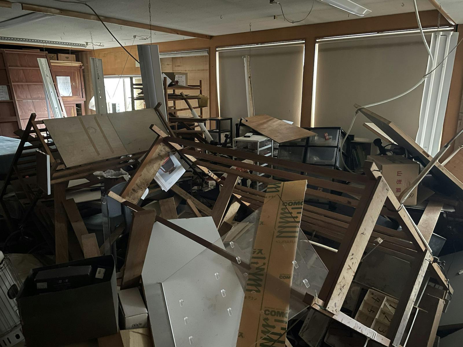 展示場では多くの商品が落下・散乱して傷がつきました