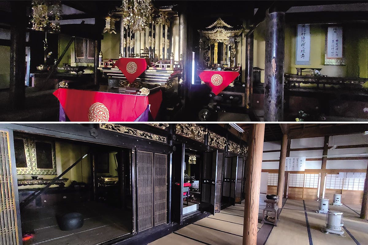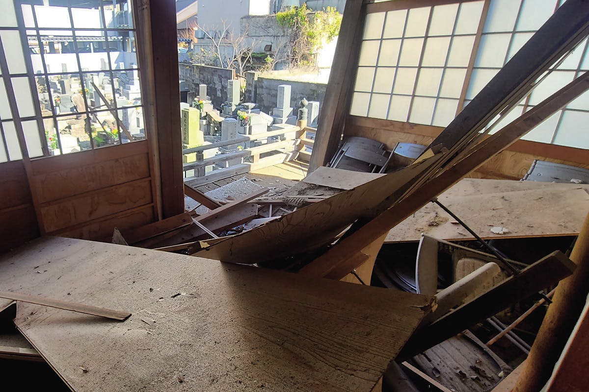 本堂裏は壁が裂け本堂台所前は入れない状態に