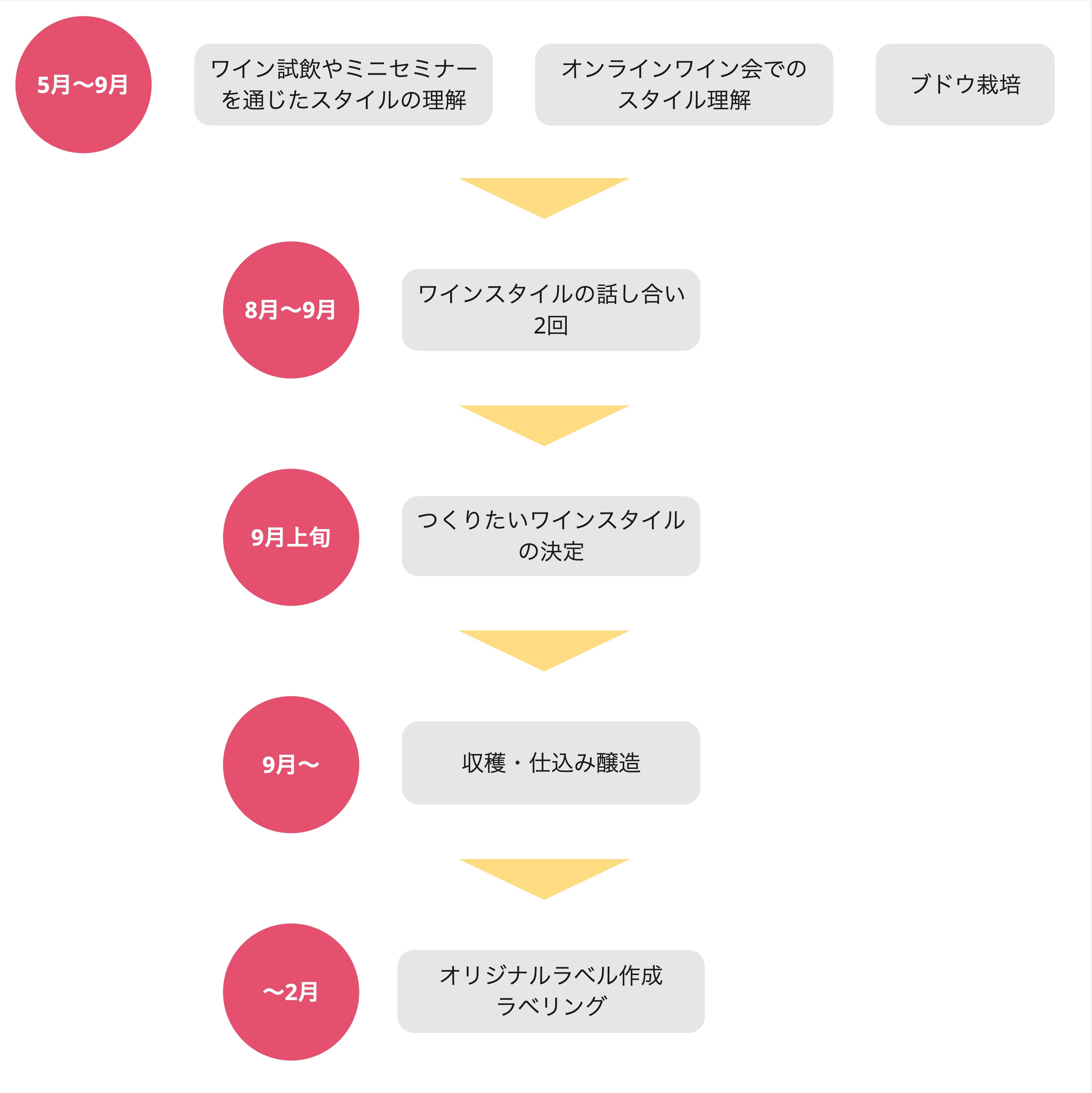 ③お手続きの完了:オリジナルワインの購入手続きが完了次第、弊社より今後の予定と、コミュニティへの参加方法などご案内いたします。
