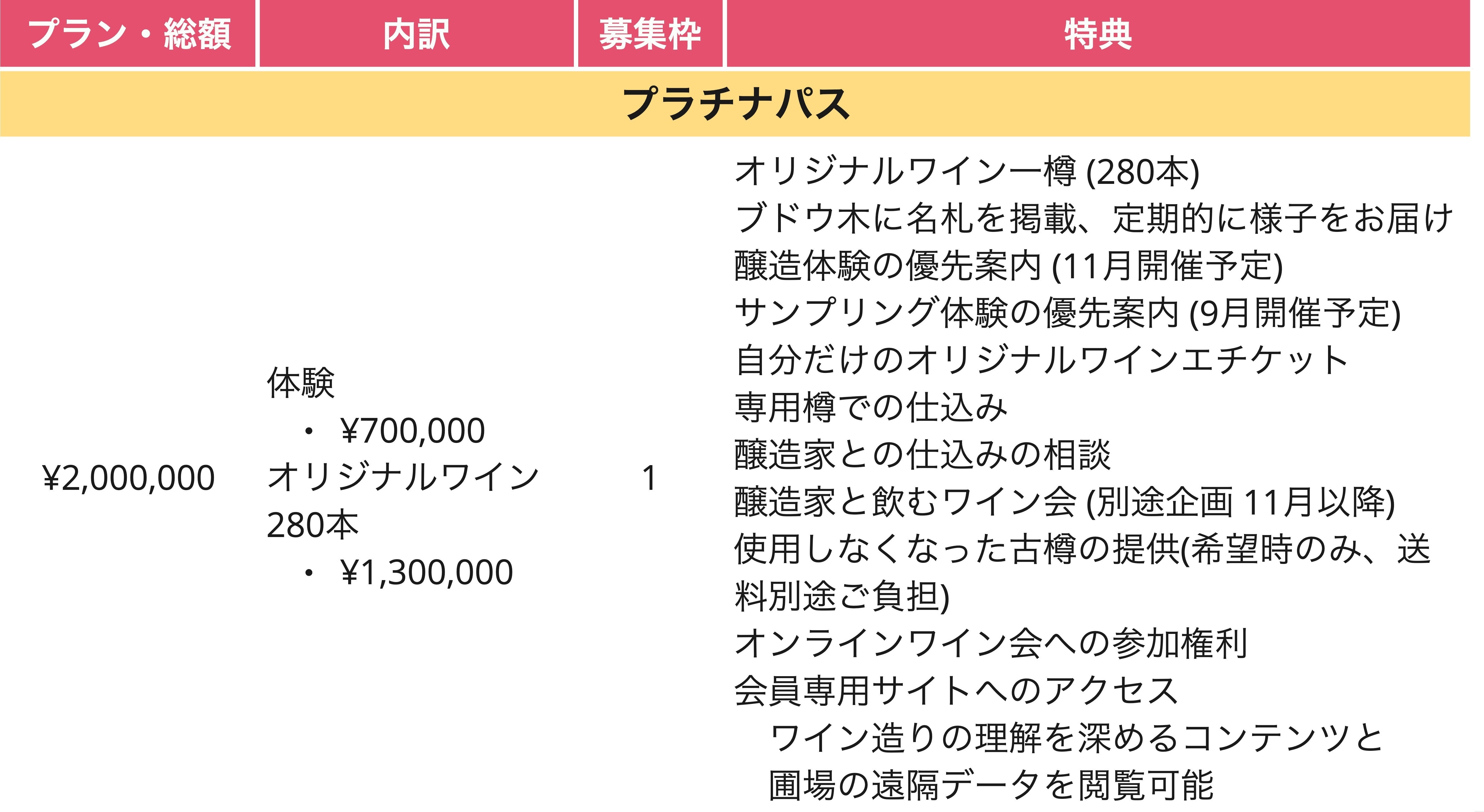 リターン②: 限定1名様のプラチナパス!自分専用のワイン1樽!