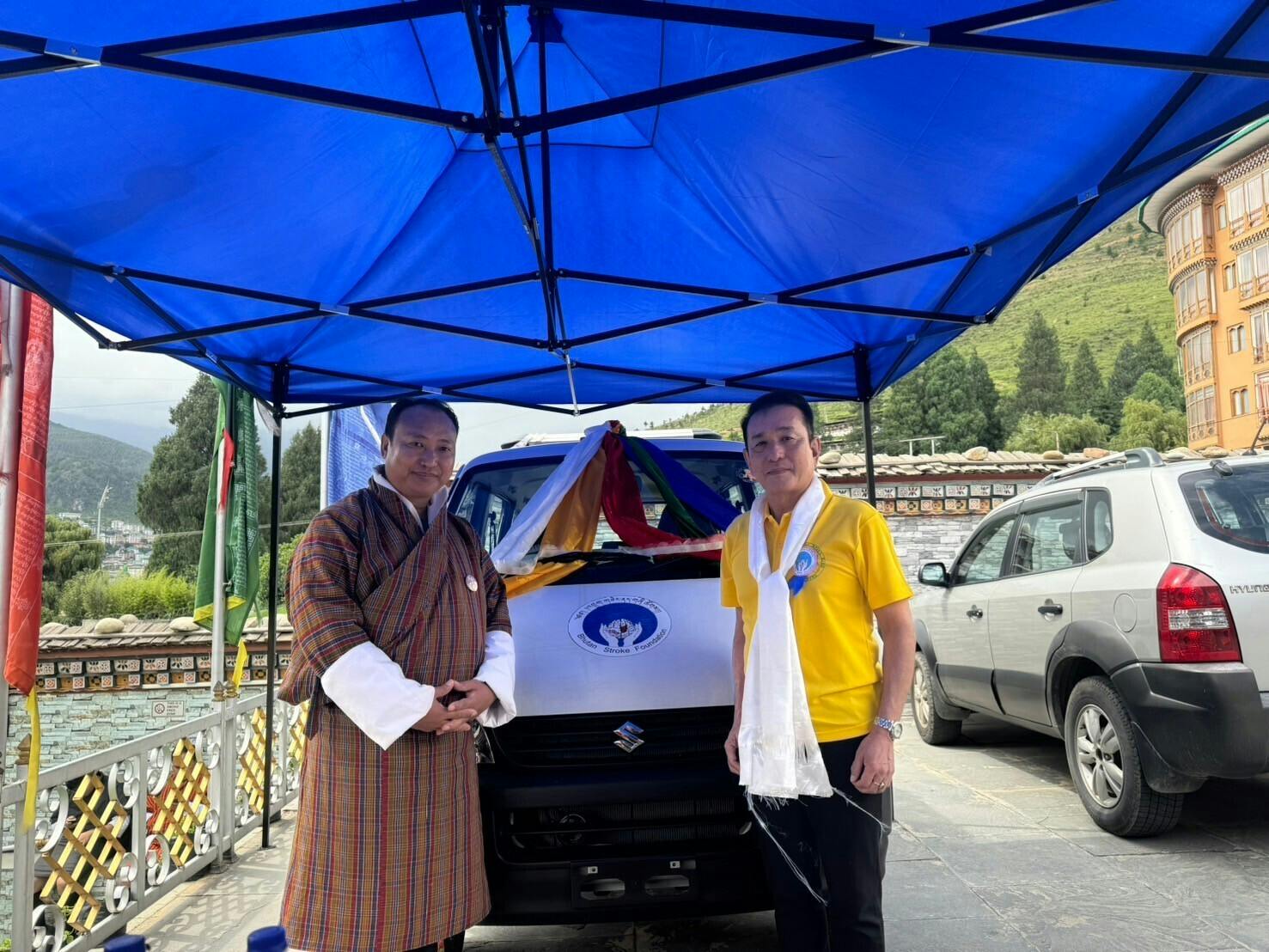 寄付いただいた救急車は、ティンプフのNYビル、ロワ・モティタンにある当団体の事務所に常設されます。この戦略的な配置は、国内の脳卒中後のケースの95%が治療されるジグメ・ドルジ・ワンチュク国立リファラル病院への素早い展開を可能にします。