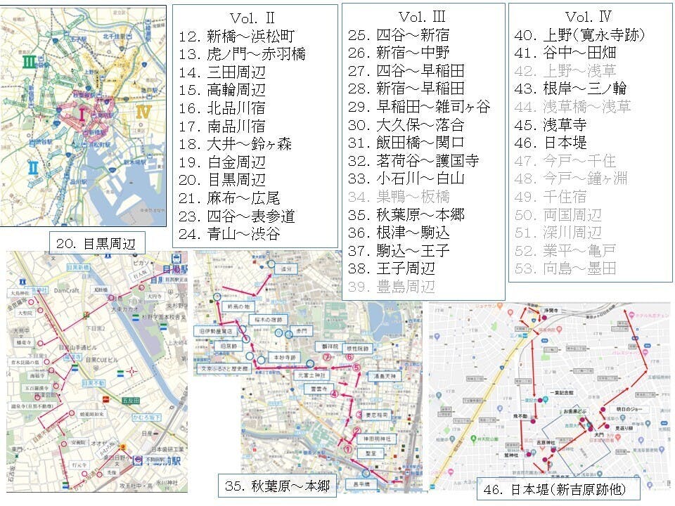 大江戸を廻る53のコースを設定しました。この内の11コースをVol.Ⅰで紹介します。