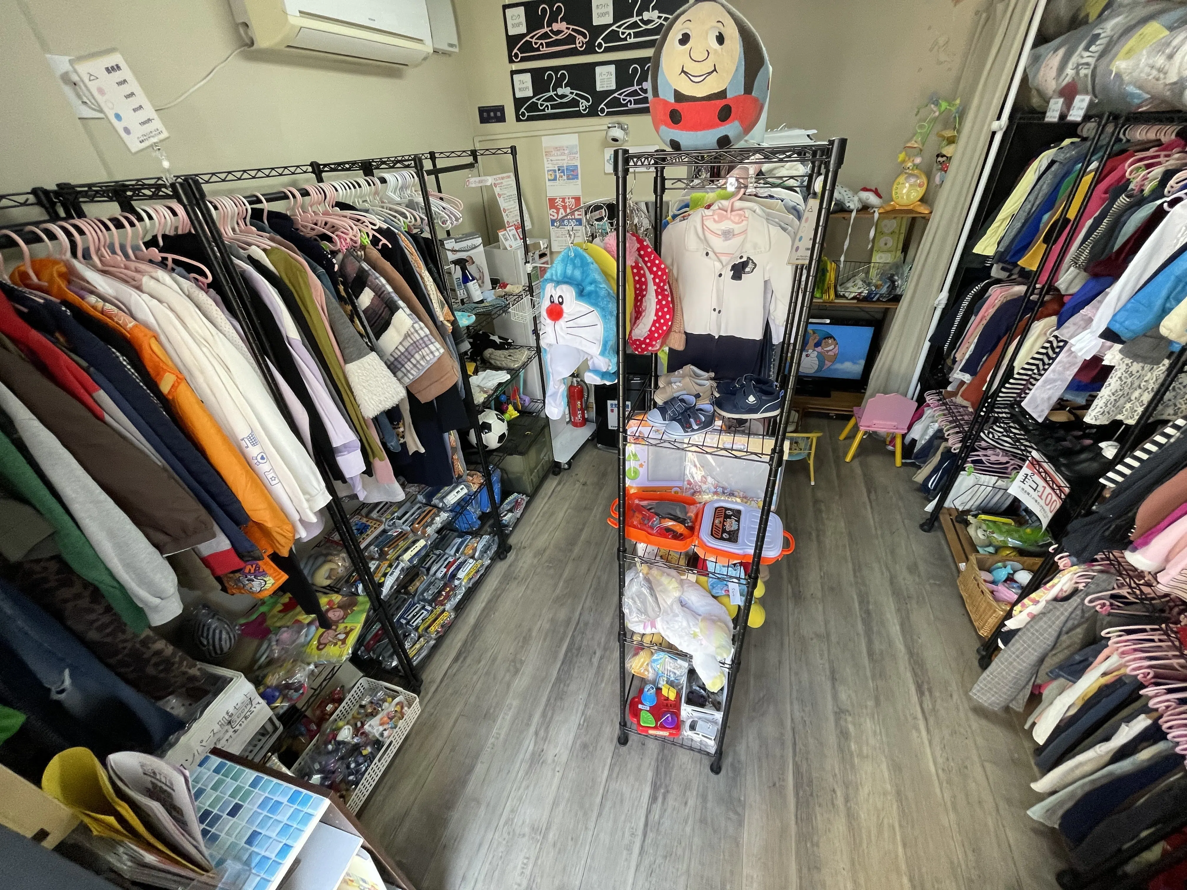 お求めやすい価格でご提供するために、「店員がいない無人店舗」にて販売をするスタイルのリユース子供服屋さんです。