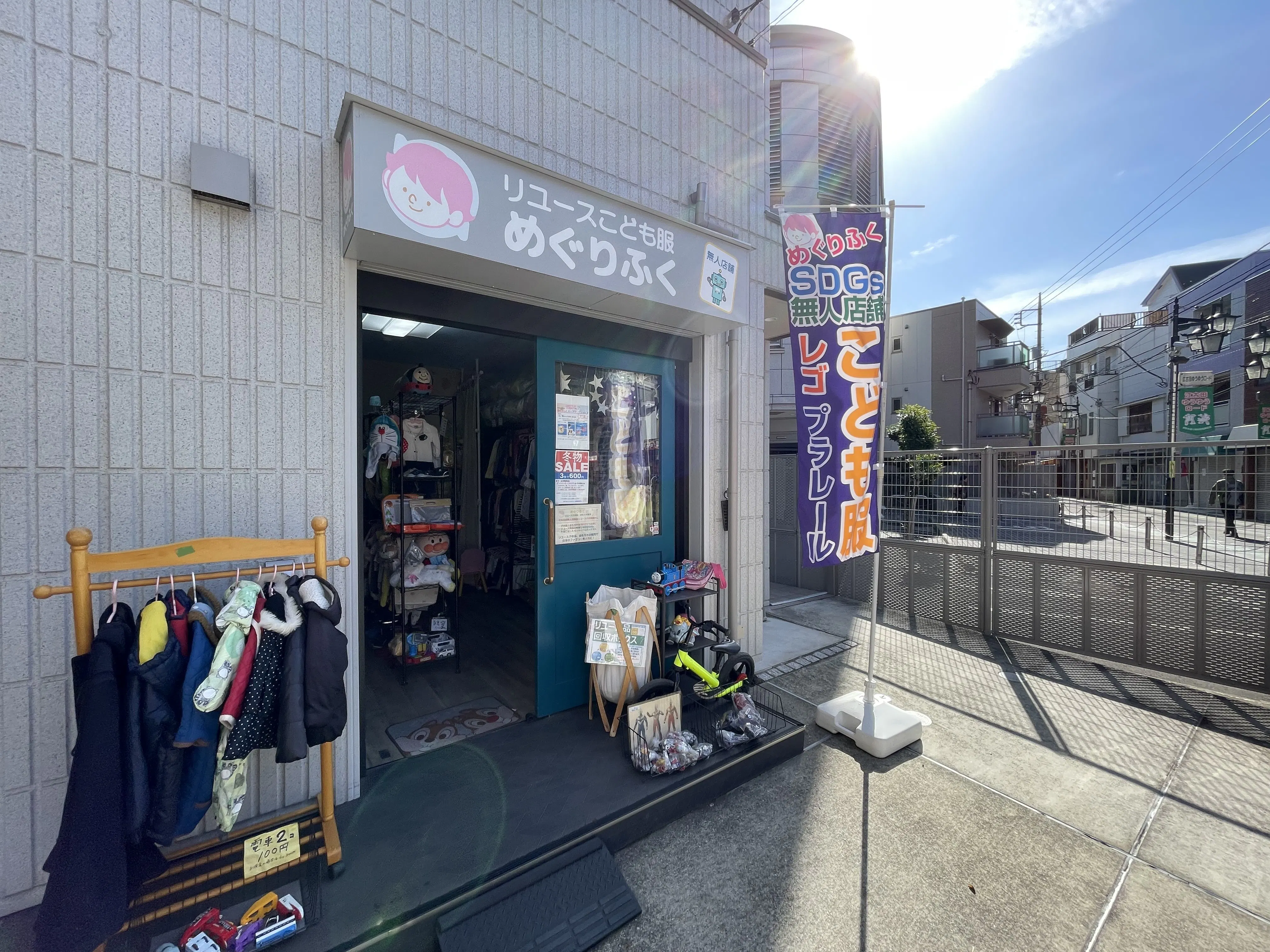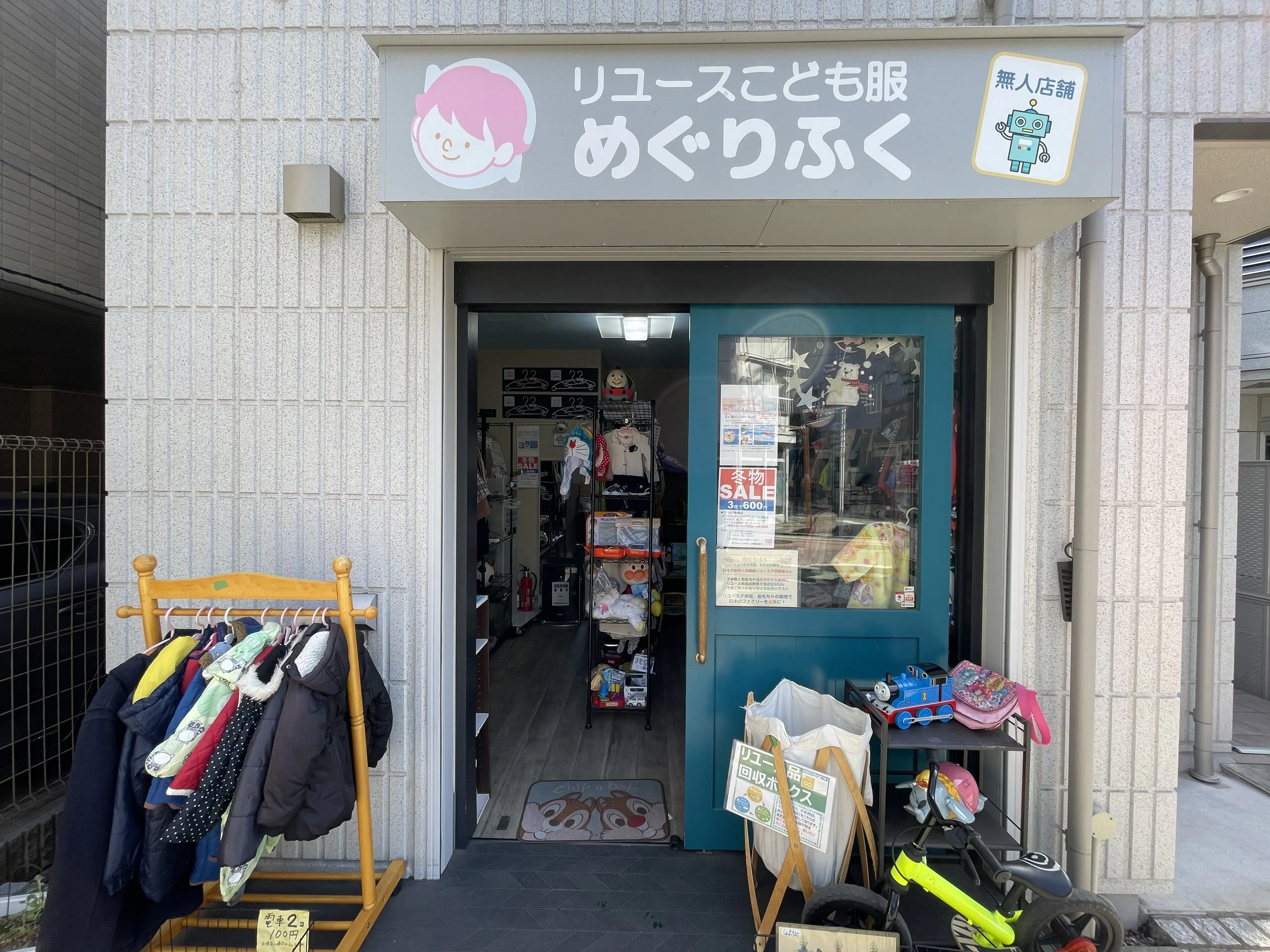 「めぐりふく」は、2021年5月に練馬区江古田の商店街 「江古田ゆうゆうロード」にオープンした「日本初の完全無人店舗のリユース子供服屋さん」です。