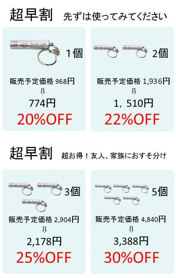 デンタルライトは人体に無害な光であるため、 光を使った遊び感覚も取り入れながら、 お子さんのお口の状態を客観的に視ると、 楽しみながら正しい歯磨き習慣へとステップアップできるかもしれません。