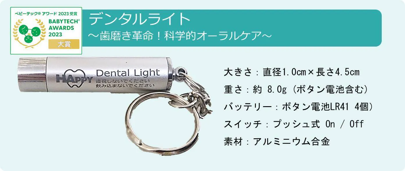 デンタルライトは、2023年11月21日、東京産業貿易センター浜松町館にて「BabyTech® Awards 2023 授賞式」で健康・毎日のお世話部門で大賞を受賞した製品です。