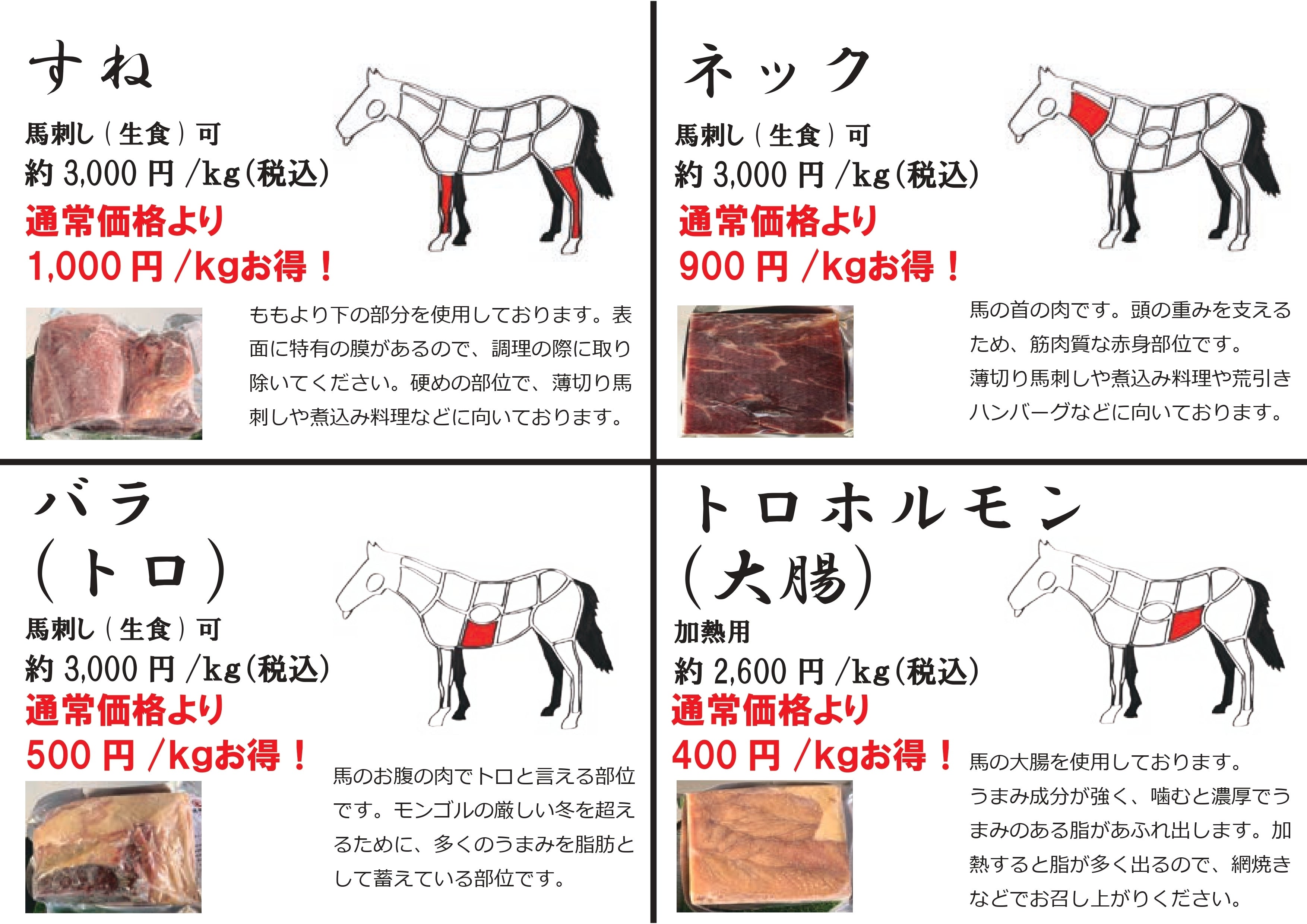 ぜひこの機会に2,000年の遊牧文化と最新加工技術が融合した、良質でお手頃な馬刺しをお試し下さい。