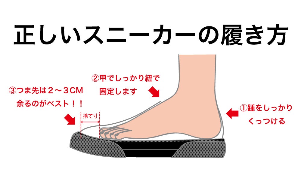 若干細身の作りですので普段のスニーカーより0.5cmアップをおすすめ致します。幅広の場合1.0cmアップの方もいらっしゃいます。