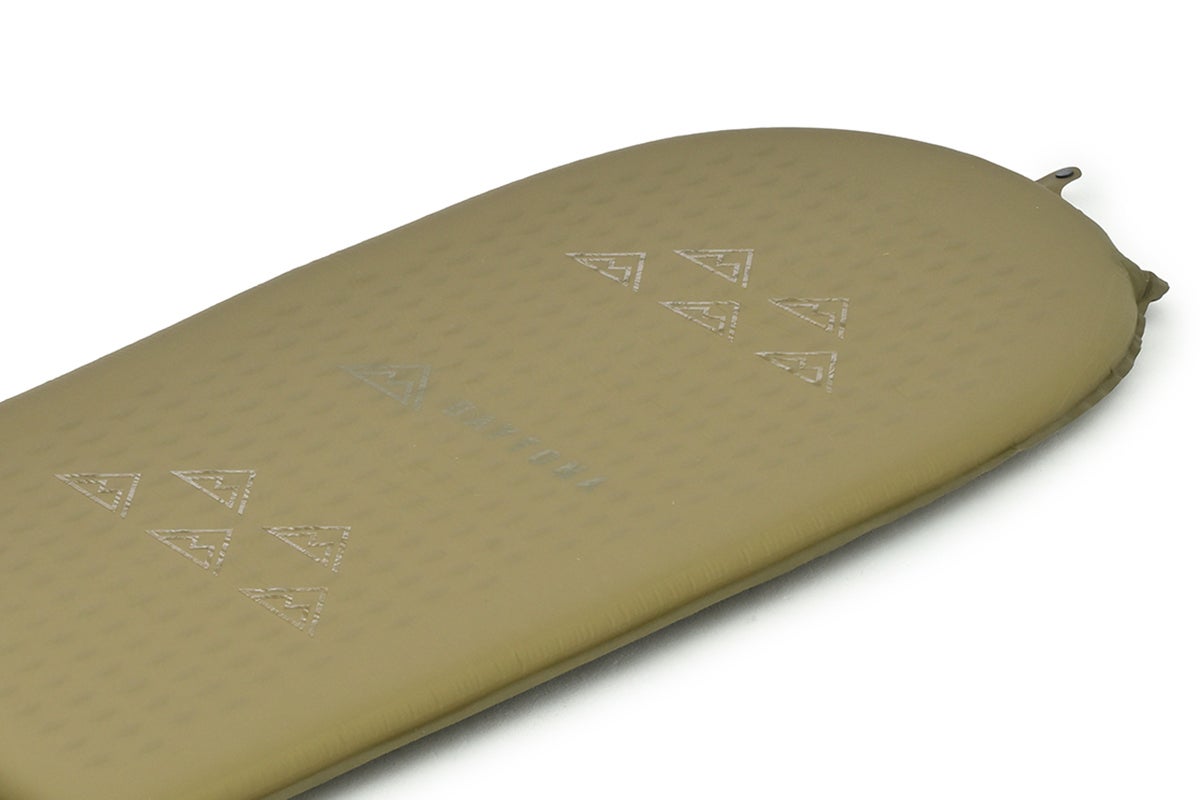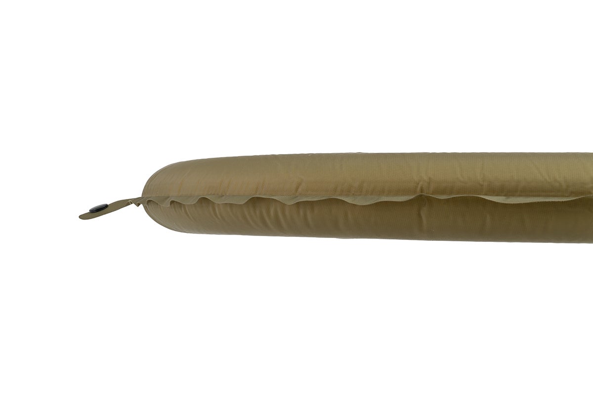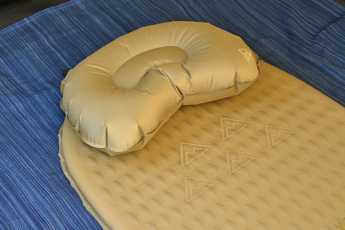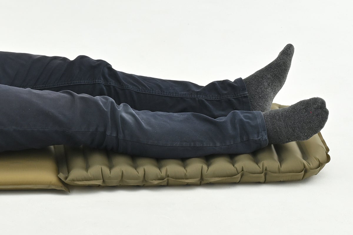 一番の特長は、ツーピースに分かれ、簡単に着脱できること。体が乗るマットの3分の2はインフレータブルマットで、中にウレタンが入っているのでバルブを開放するとある程度は自動で膨らみます。弾力性に優れ、寝心地も申し分なし。足側の下3分の1は空気で膨らませるエアーマット。ワンウェイバルブを採用し、空気を入れやすい仕様です。