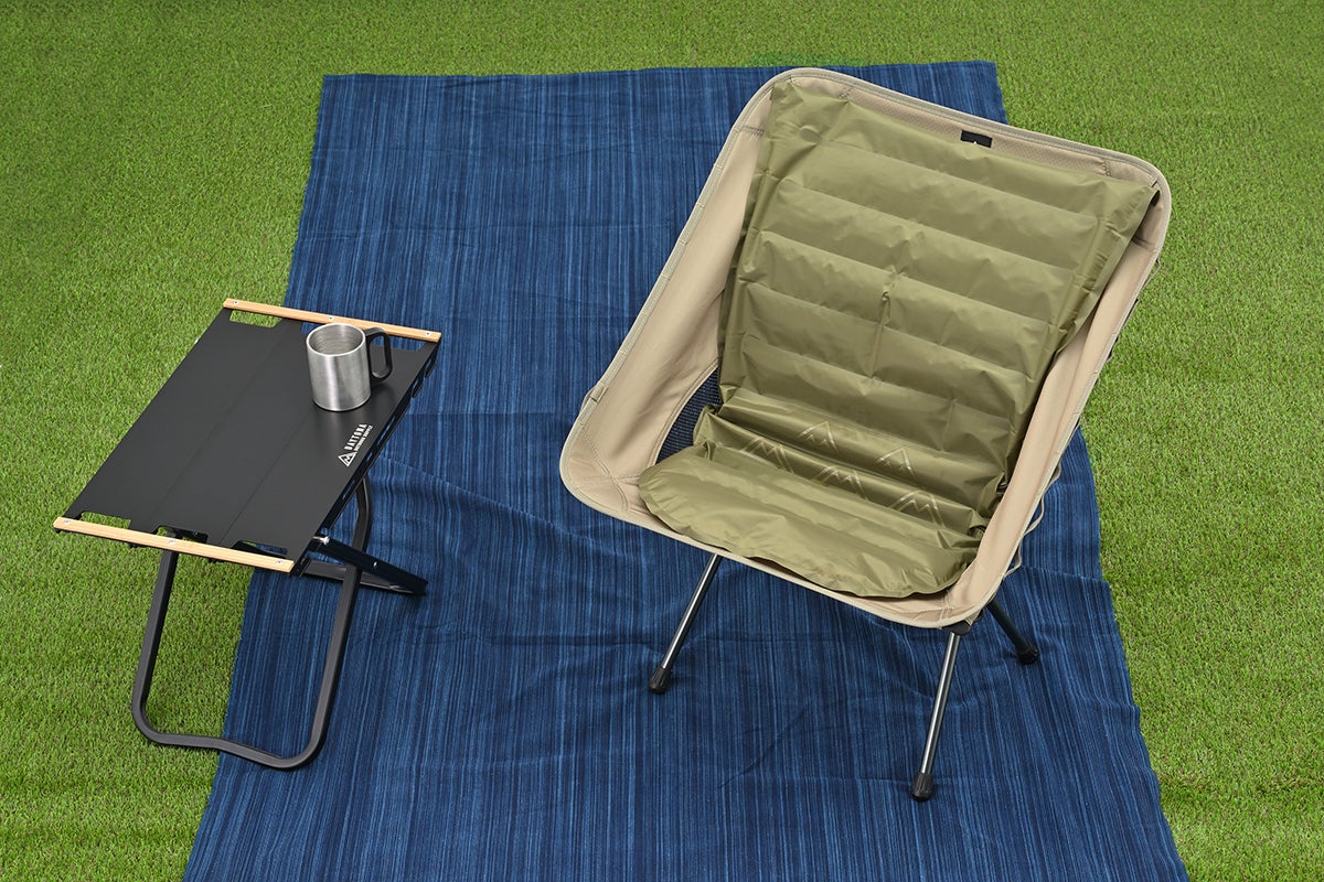 分離することで、エアーマットをイスのクッションや座布団代わりに使える、うれしいメリットも生まれました。これまで寝る時にしか使わなかったマットが、日中も活躍するようになったんです。足側のエアーマットを持っていかなければ、さらにコンパクトに持ち運ぶこともできます。