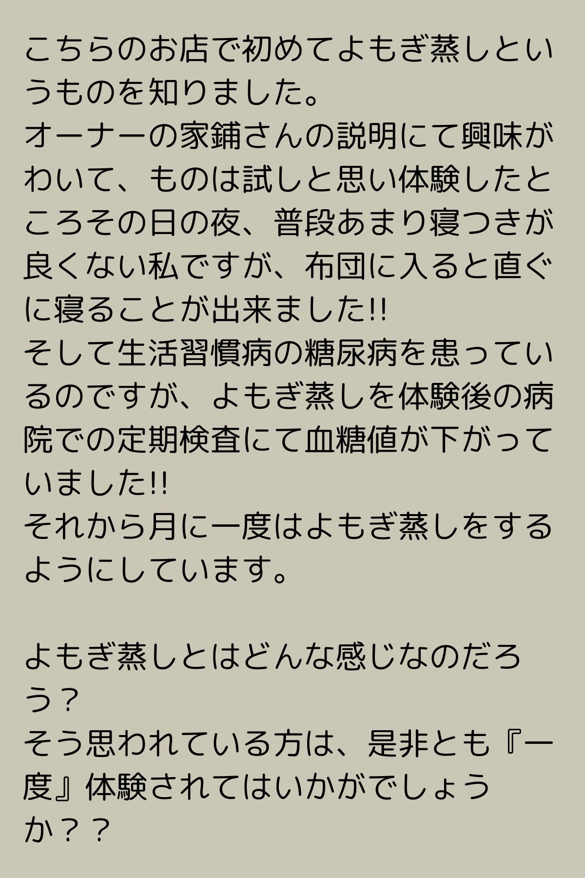 ぜひこの機会によもぎ蒸しを体験しに、そして僕とお話ししに来ませんか?
