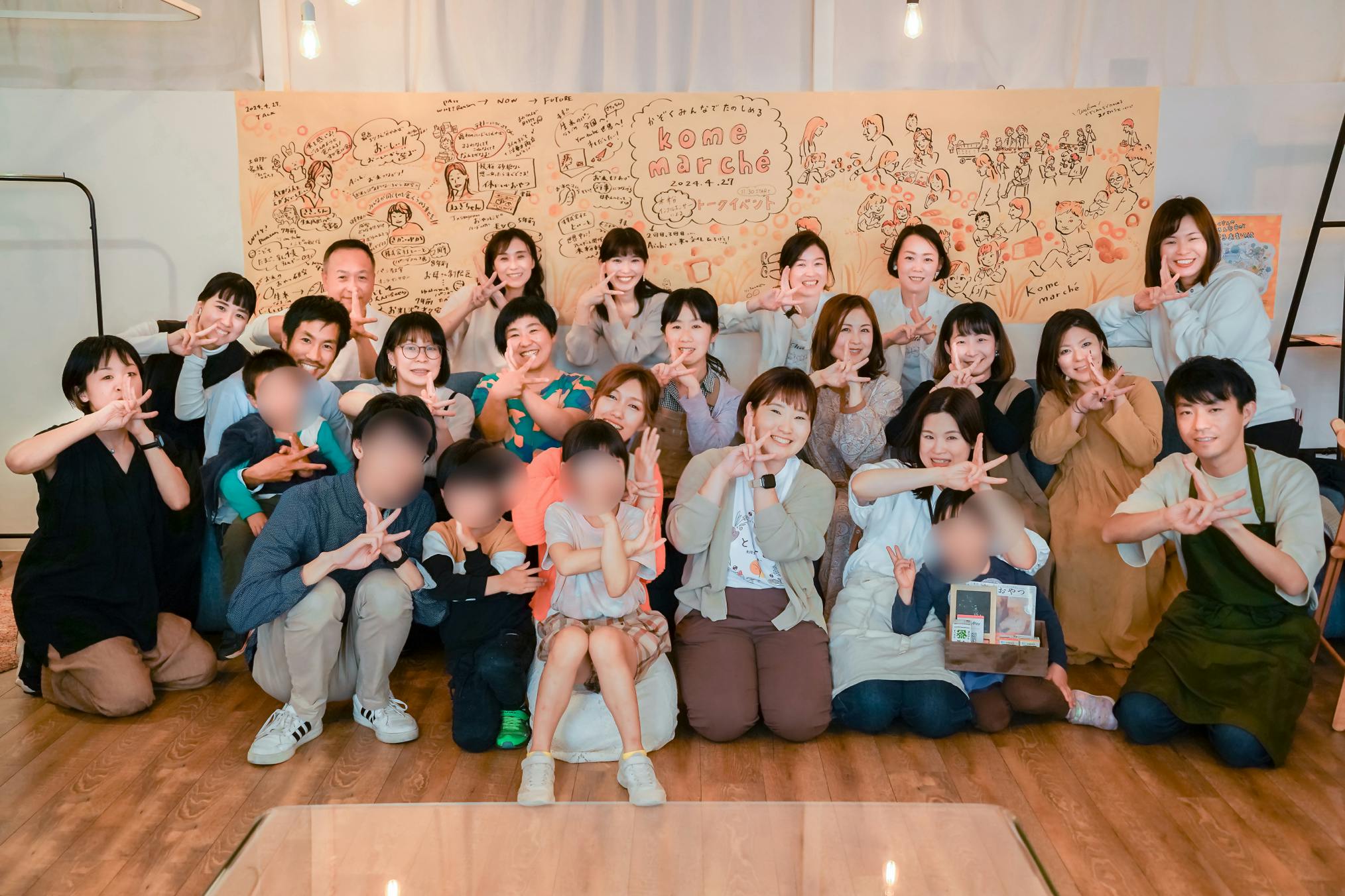 2024/04/29 10:00こんにちは!プロジェクトリーダーの酒井です^^先日27日、ついに!kome marché当日を迎えました〜**マルシェ会場がビルの4階ということで、どのくらいの方に来て頂けるか不安でしたが、なんと”約170名”の方にご来場いただきました!とっても嬉しいです!本当にありがとうございました!! 会場はこんな感じ↓(準備の様子です)日差しがいい感じに差し込んでとっても明るい雰囲気でした*オープン前から並んでくださった方たちもいて、スタート直後にはもう目の前が見えないくらいでした!11時45分ごろからは酒井・ねぎちゃん・さきっちんによる米粉トークイベント!・活動内容・今の活動を始めたきっかけ・今まで大変だったこと・仕事と家庭の両立・今後の展望について約30分お話しさせていただきました!トークイベントも目の前でたくさんの方に聞いていただくことができました!大きく頷いてくれている人もいて、なんだか嬉しかったです^^トークイベント中(というかマルシェ開催中ずっと)、後ろでスケッチジャーナリストの真子さんが、トーク内容やマルシェの雰囲気をイラストに書き起こしてくださっていました♪最終的にこんなに素敵なイラストに仕上がりましたよ♪とっても大盛況だった第一回kome marché!次回は秋ごろまた開催したいと思っています^^今回、岐阜や兵庫、静岡など県外からもたくさんの方に来ていただきました!ぜひ2回目も楽しみにしていただければと思います^^最後は出店者の皆さんやそのご家族様と♪本当に本当に1日ありがとうございました!そしてここまでご支援いただきありがとうございました!リターン品も随時発送していきますので、楽しみにお待ちくださいね! もっと見る