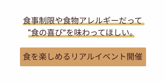 アレルギーを持つ方や、様々な理由で食事に制限がある方など..みんなで一緒に食べられることの楽しみや幸せを、今回のイベントを通じて感じて頂けたら嬉しいです。