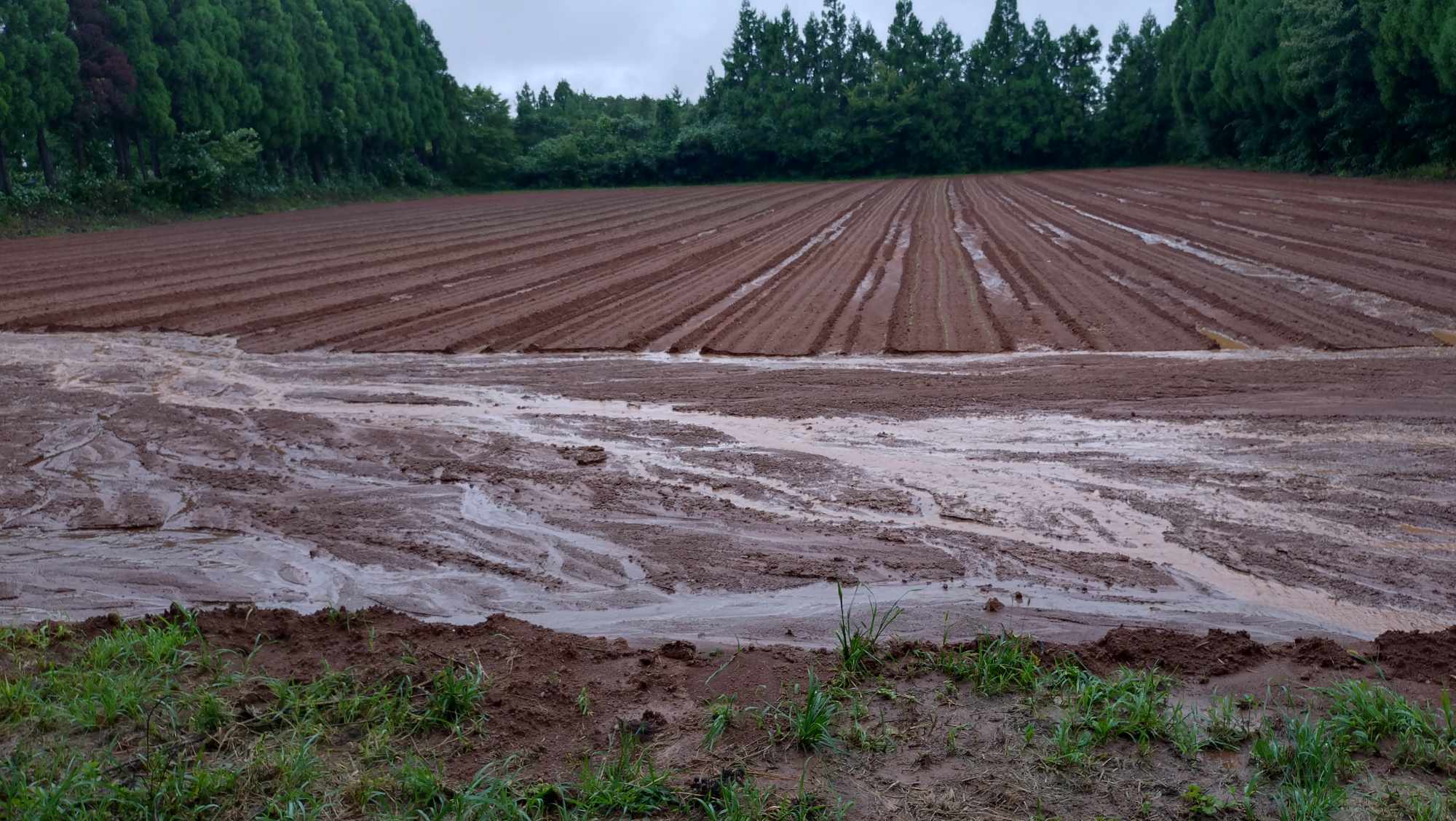 大切な畑の被害は免れず、大量の雨水で変わり果て川のように芽が出た野菜が流されていました。