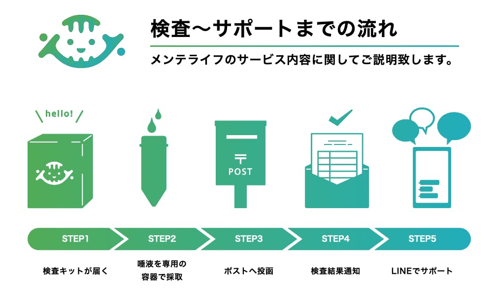 唾液を専用の容器に入れて検査機関へ郵送するだけです。およそ1ヶ月半後に検査結果がわかります。