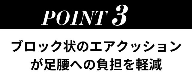 独特のブロック状エアクッションは、足腰への負担を軽減します。