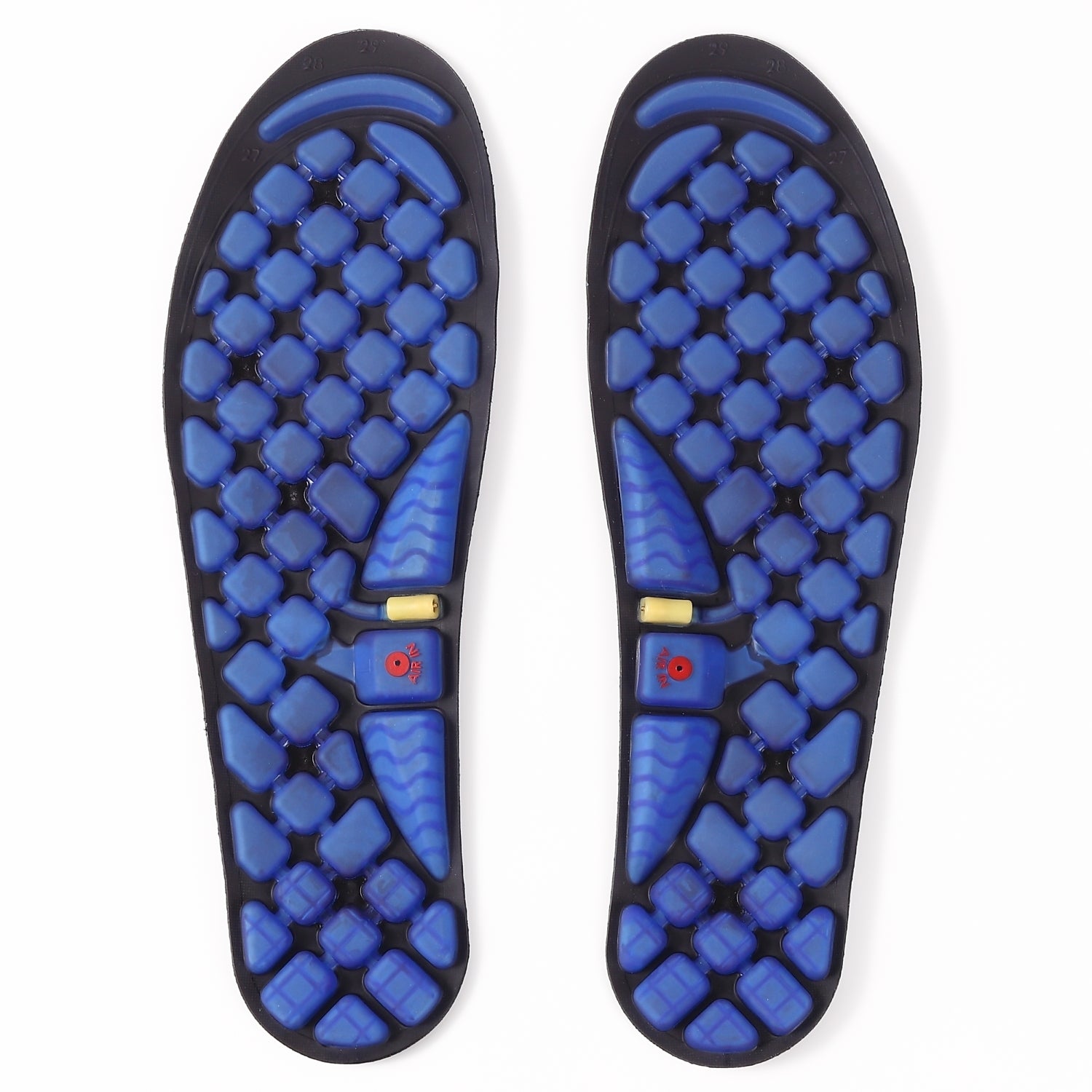エアポンプ搭載インソールは、人間工学に基づいて設計されており、歩行時の衝撃を効果的に分散します。エアクッションが足裏の圧力を均等に分散し、足や膝にかかる負担を大幅に減少させます。