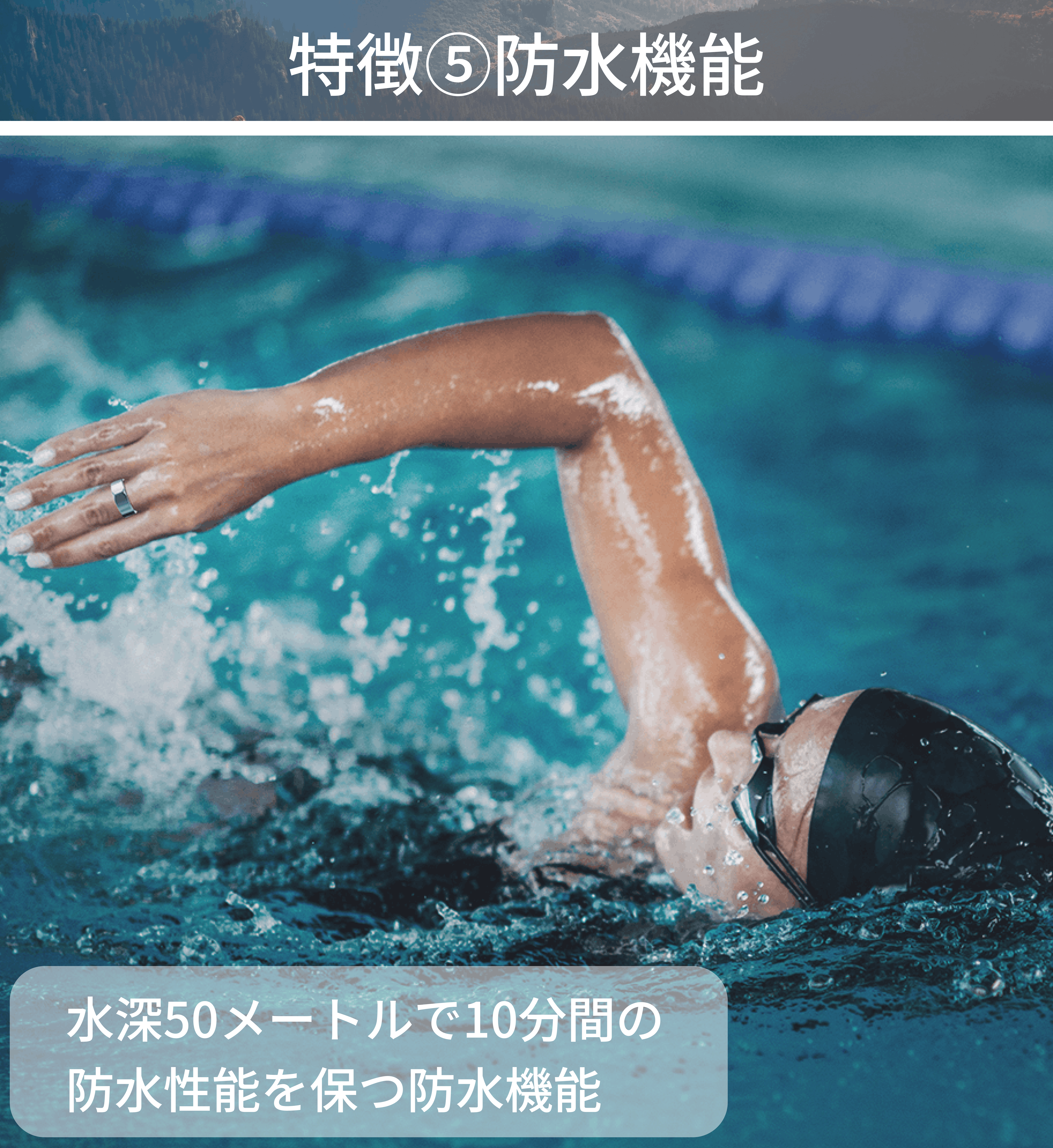 Patrus Ringは、水深50メートルでの最大10分間の防水性能を誇ります。