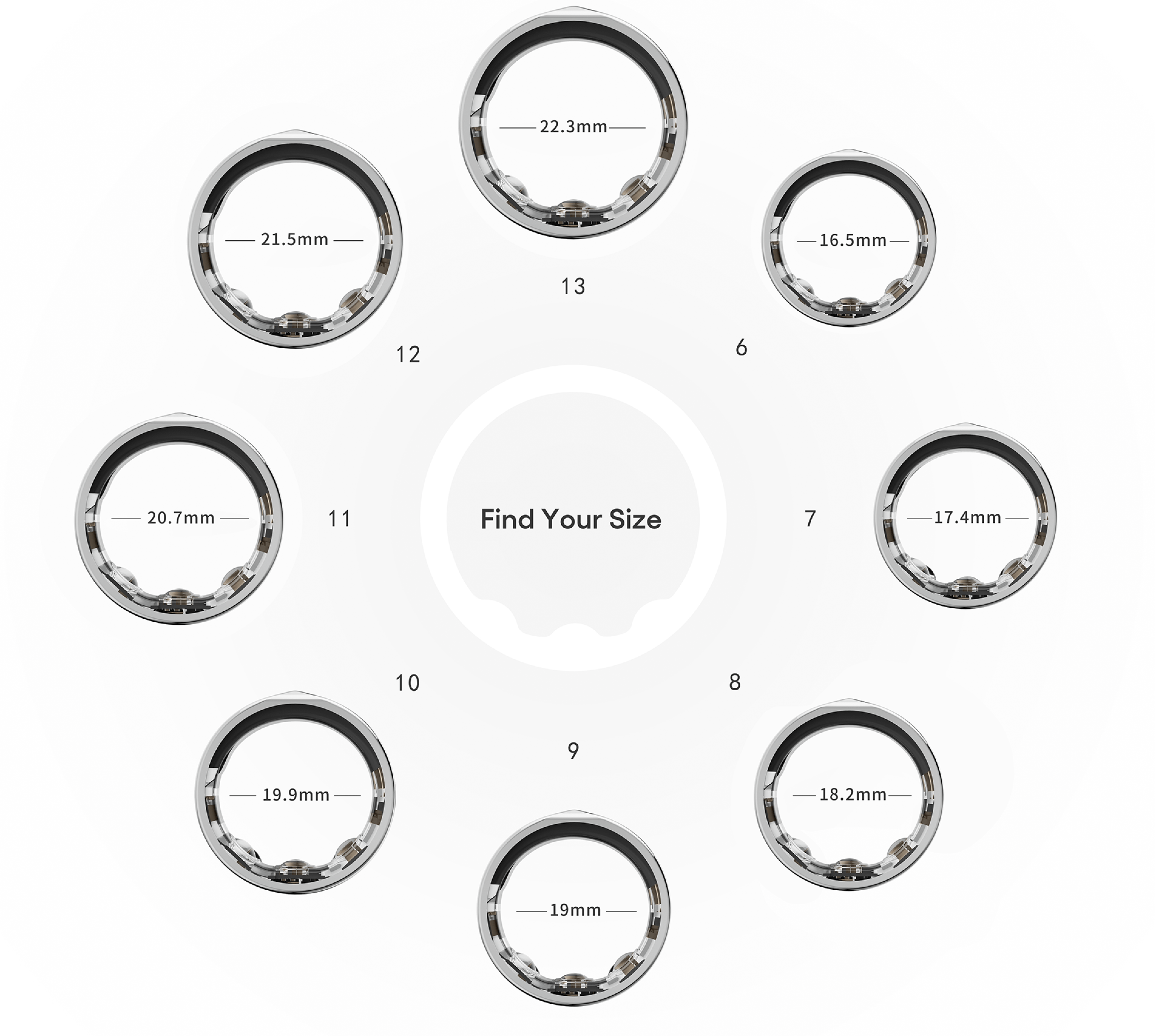 リング内部に搭載された3つの高機能センサーが、独自のアルゴリズムを用いて日々の活動を正確に計測します。