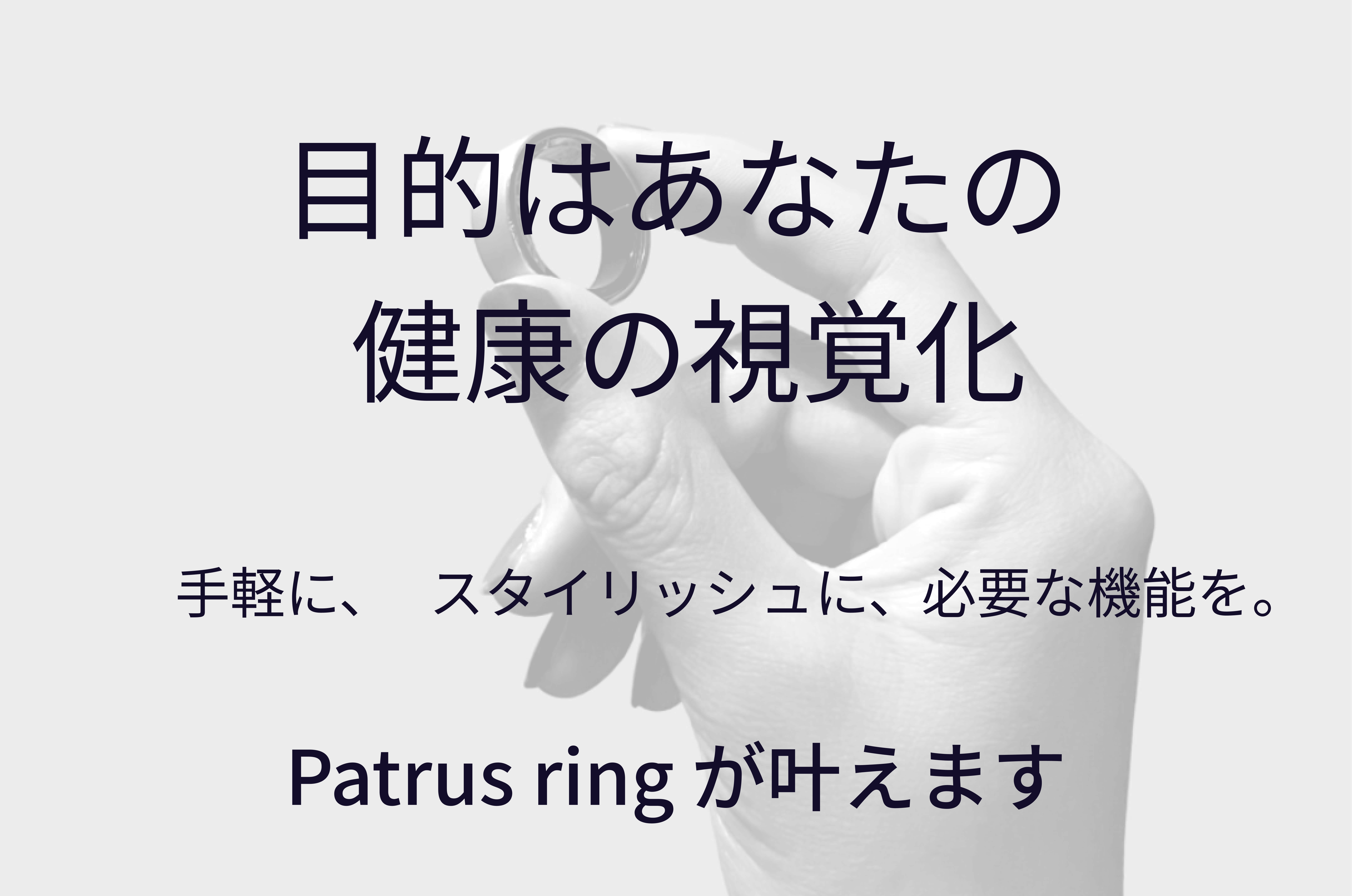 Patrus Ring(パトルスリング)は、心拍数、ストレス値、睡眠の質をチェックし、あなたの健康を常に観察します。忙しい毎日でつい忘れがちな健康への意識。Patrus Ringで、健康第一の生活をスマートに手に入れましょう!