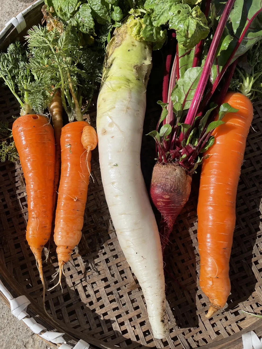 その後、採れたての野菜を配達していただきありがたく食しましたが、瑞々しい食感と今まで食べていた野菜とはまるで別物のように、野菜の本当の甘さや美味しさを噛んでいる内に自分の体内が喜んでいる感じと元気になる感覚を体感しました!!