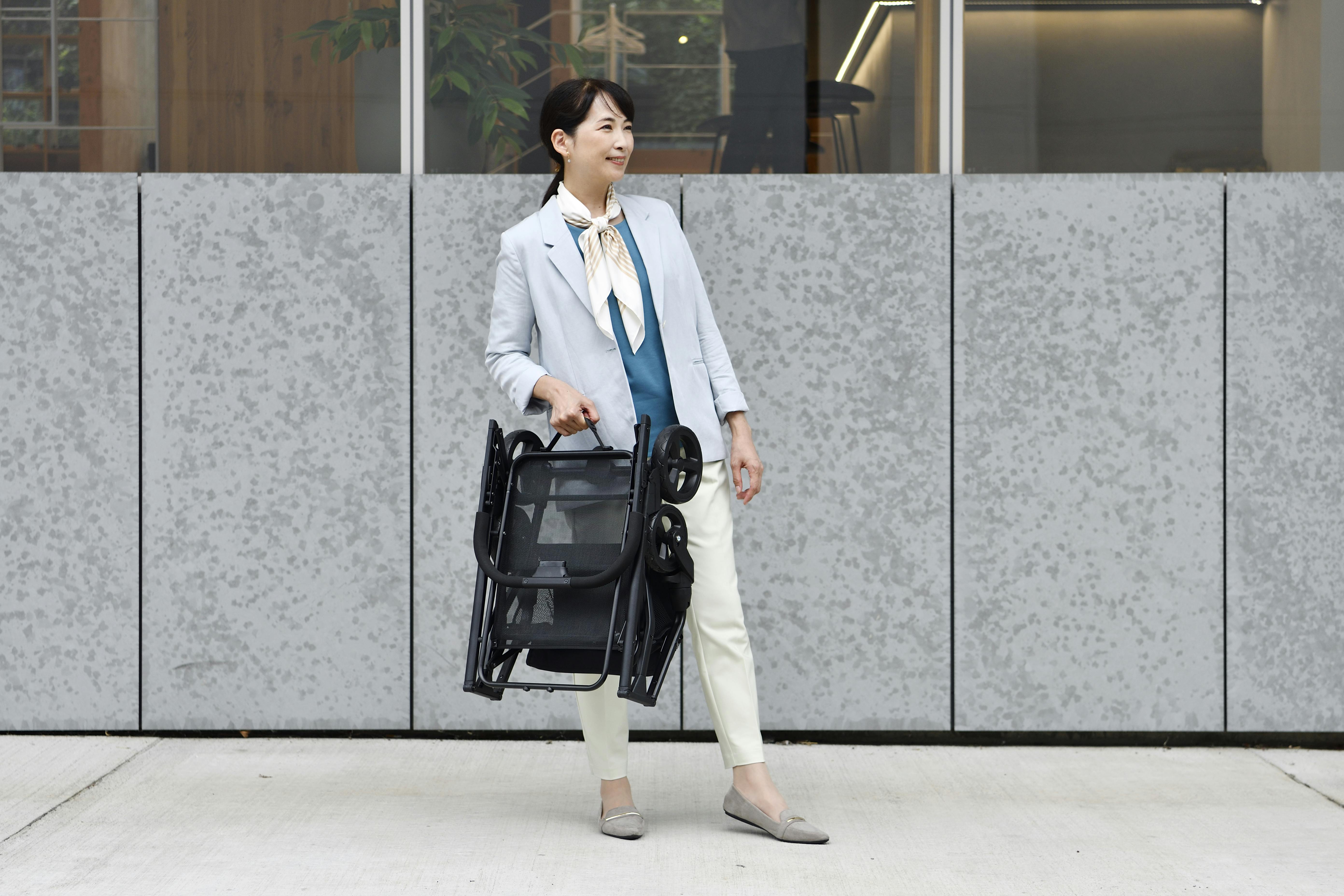 もちろん自宅での置き場所も省スペース。玄関スペースに置いても邪魔にならないので、すぐに近所のお買い物に利用できます。