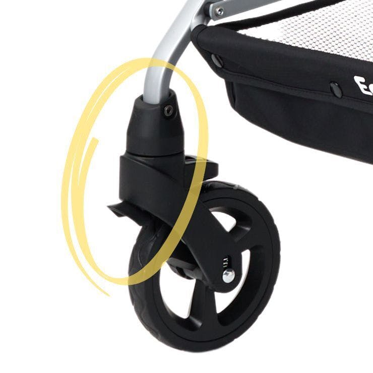 そのためホイールの回転性が良く、片手での操作もラクラク!小回りの操作性はベビーカーから引き継いでいます。