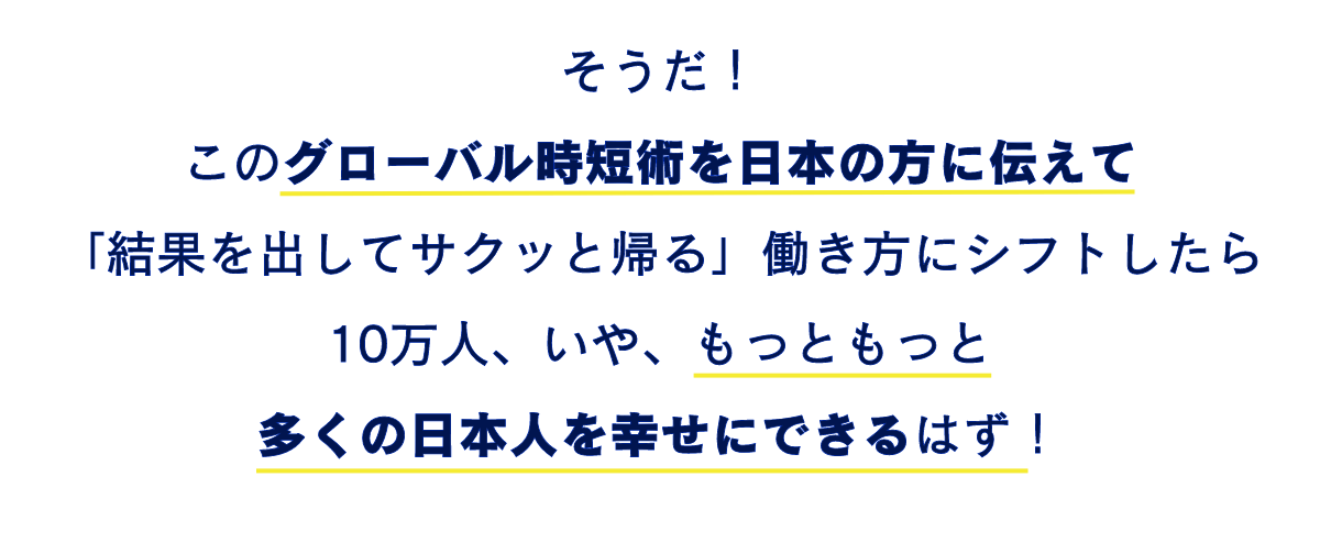 1人でも多くの方が結果を出してサクッと帰るために「神速時短術」を実践され、