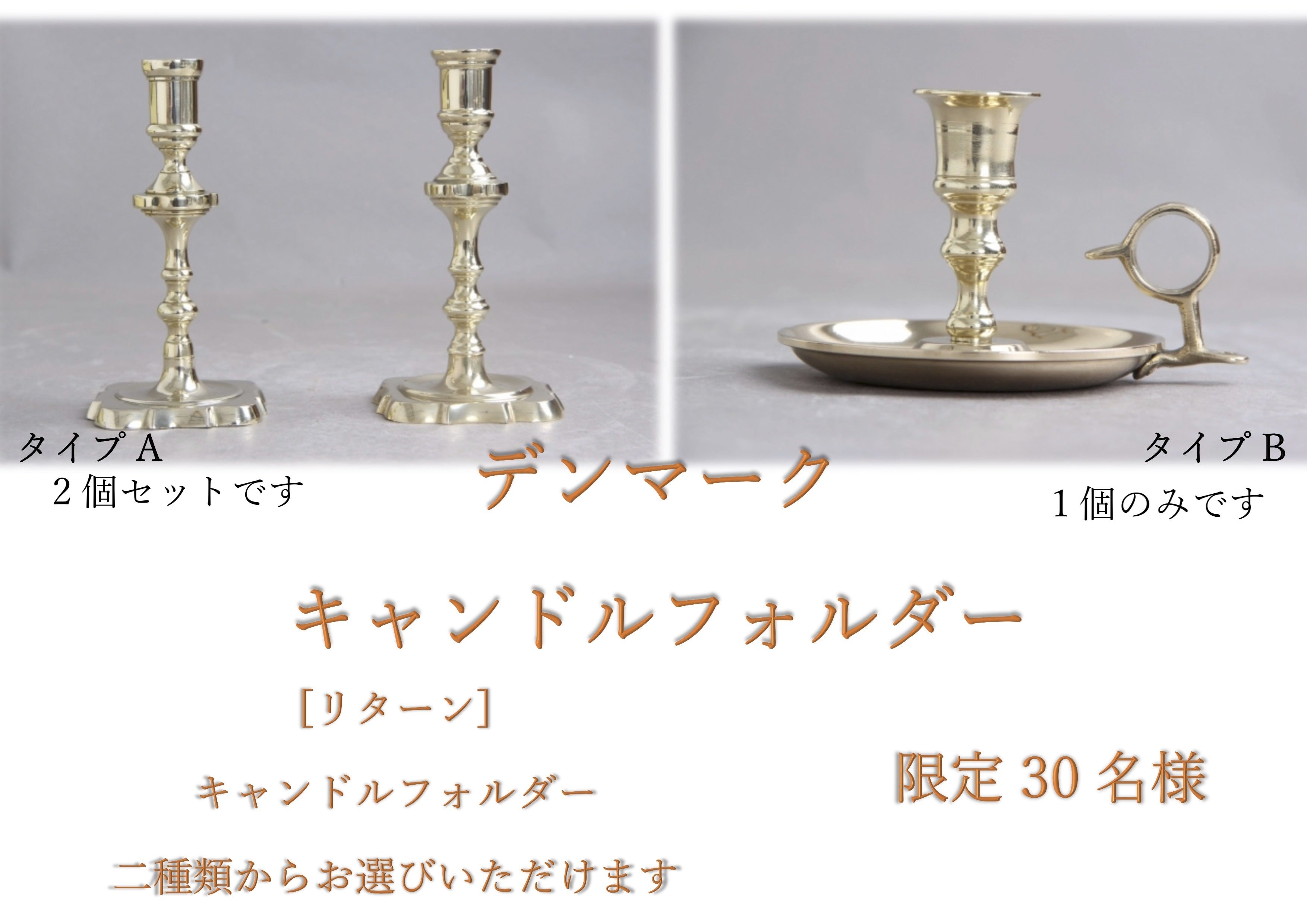 こちらのリターンはキャンドルホルダーになります。デンマークではキャンドル使用率、購入率が一番高いです。だからどの家庭に絶対キャンドルフォルダーがあります。日本にいながらヨーロッパの雰囲気を味わってもらえたらと思いこちらのリターンを選ばせて頂きました。タイプは2種類ありますのでこちらを選ぶときは、どちらが欲しいかをお伝えください。