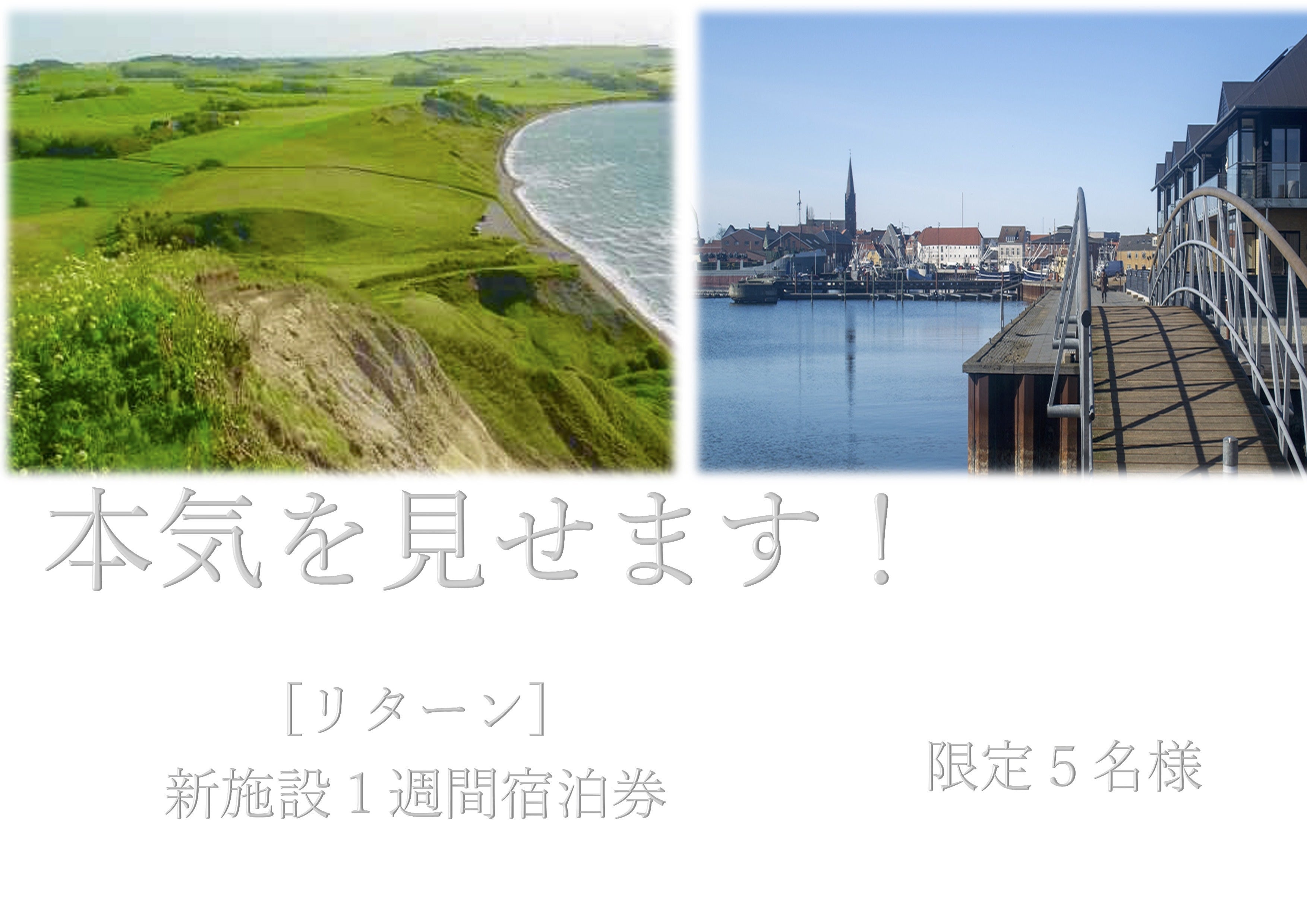 1週間新施設の宿泊券は一名様のみの対応になります。1週間、食事付き、デンマークMors観光案内