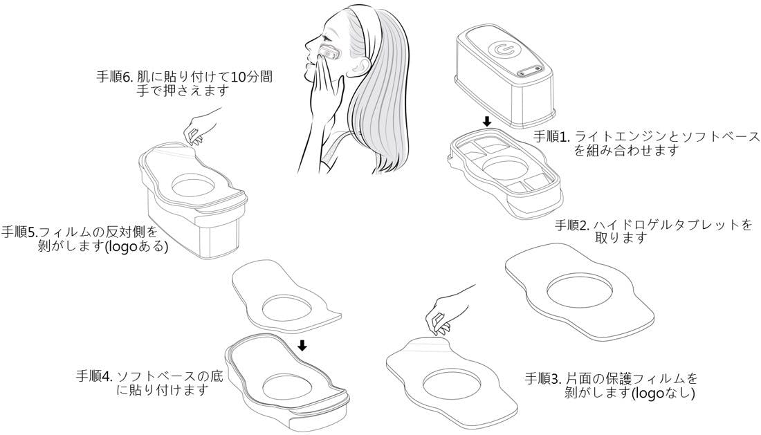 独自の光美容技術とヒアルロン酸、没食子酸等を配合した付属のハイドロゲルシートを併せて使用することで、お肌に美容成分を誘導しやすくしています。