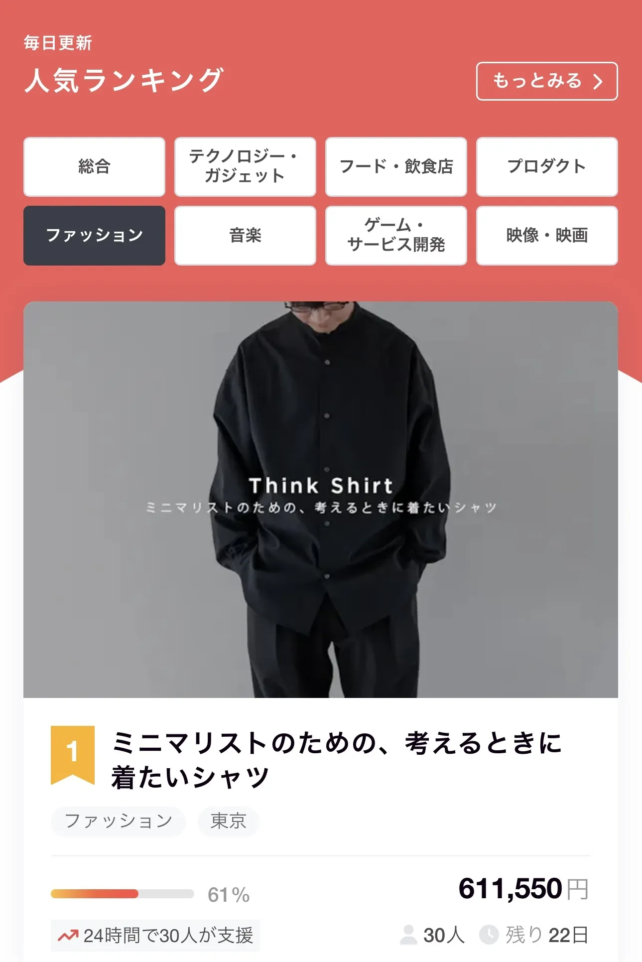 2024/03/09 18:26いつもMNMMを支援頂きまして誠に有難うございます。昨日よりスタートしたMNMMの新しいプロジェクトミニマリストのための、考えるときに着たいシャツが、CAMPFIREの人気ファッションランキングで1位になりました!!支援頂いた皆様、本当に有難うございます!!引き続き、MNMMをどうぞよろしくお願いいたします。 もっと見る