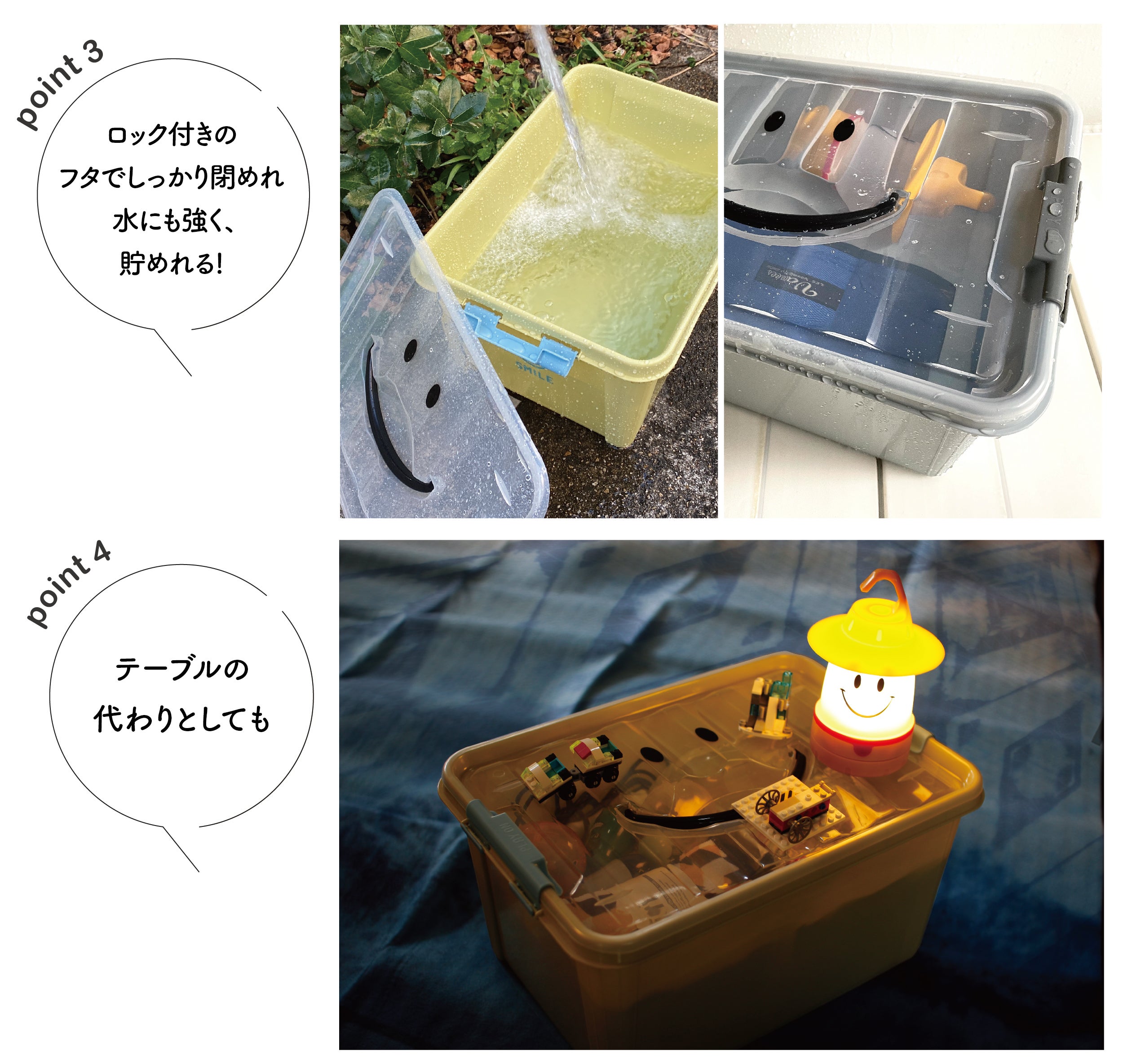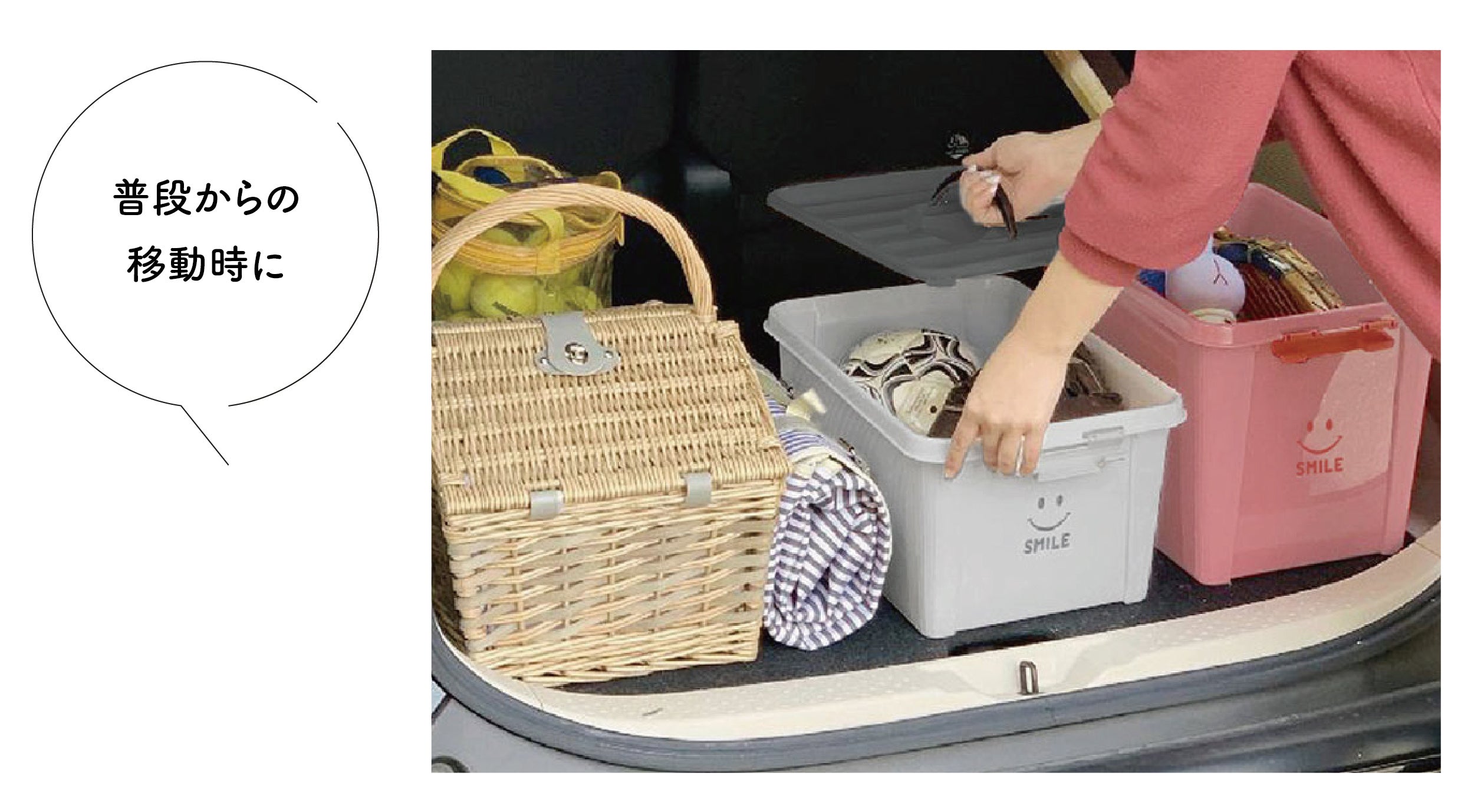 普段からキャンプやお泊まりの際にも、スマイルボックスと一緒に移動したり、中身の確認をすることで、自分のものという安心認識を持たせることにもつながります。