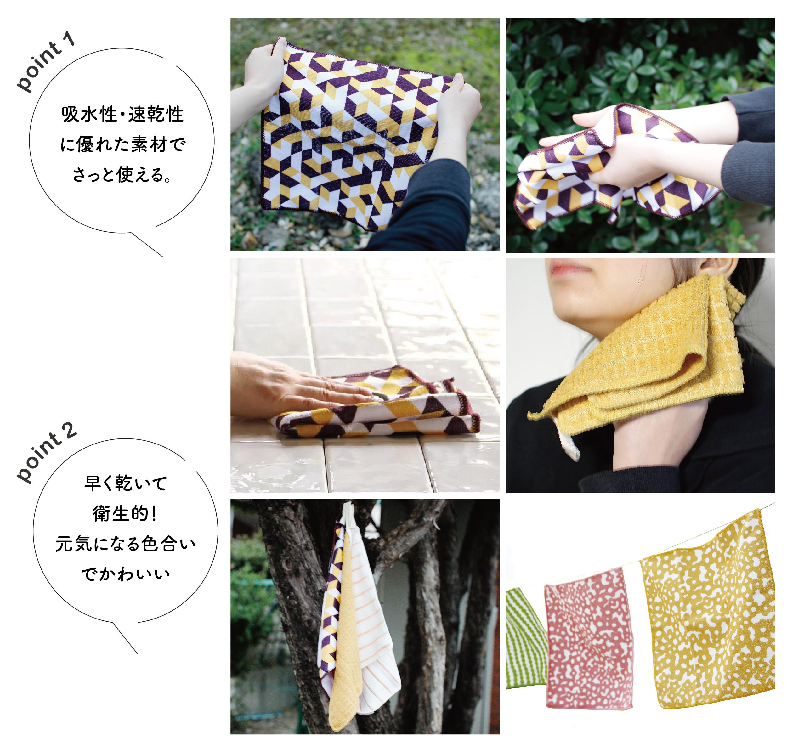 カラフルなマイクロファイバーでできたクロス。タオルは色んな用途に使え重宝する防災必携アイテム。水や汚れを拭き取ったり、手洗い後の拭き取りも衛生面でとても大切で、すぐ乾くこともポイント。気持ちが明るくなるような可愛い柄も、被災時には小さな癒しとなります。