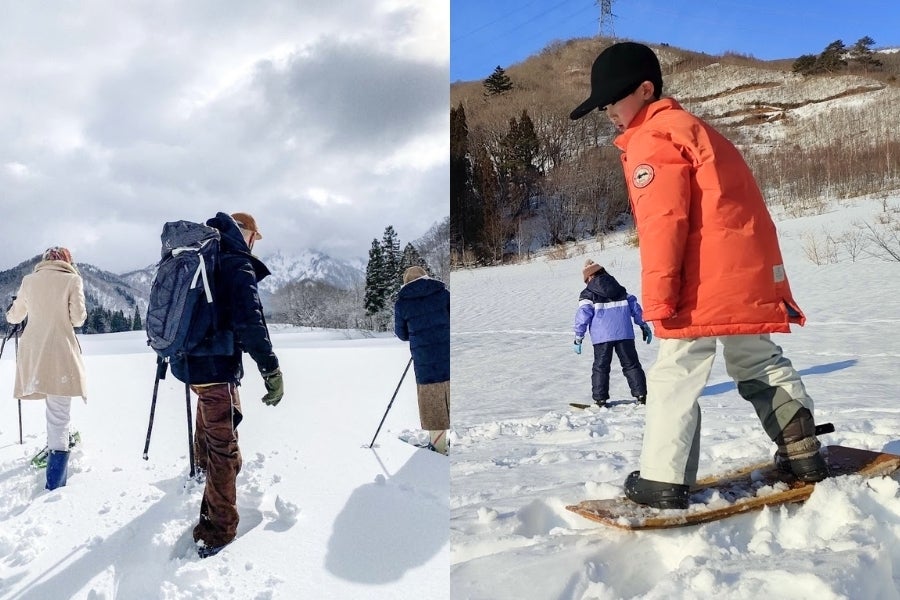 また、スノーシーズンには、越後湯沢の中では唯一無二のパウダースノーでのバックカントリースキーが味わえます。さらに、地場の木材を削り出して作る「雪板」を使ったスノーアクティビティの体験をすることもできます!