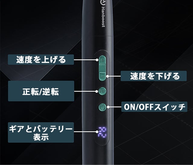 簡単なスイッチ操作で、材料の硬度やタスクの具体的な要件に合わせて回転速度を最適化でき、より効率的に作業ができて便利。
