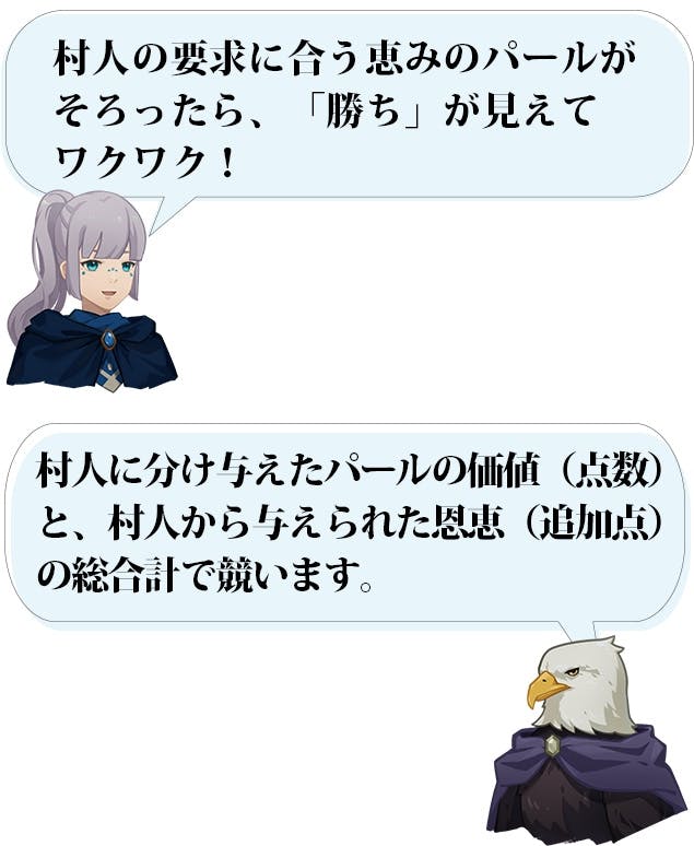 価値あるパールを獲得するだけでは勝てない。では村人の要求にどうこたえるか?