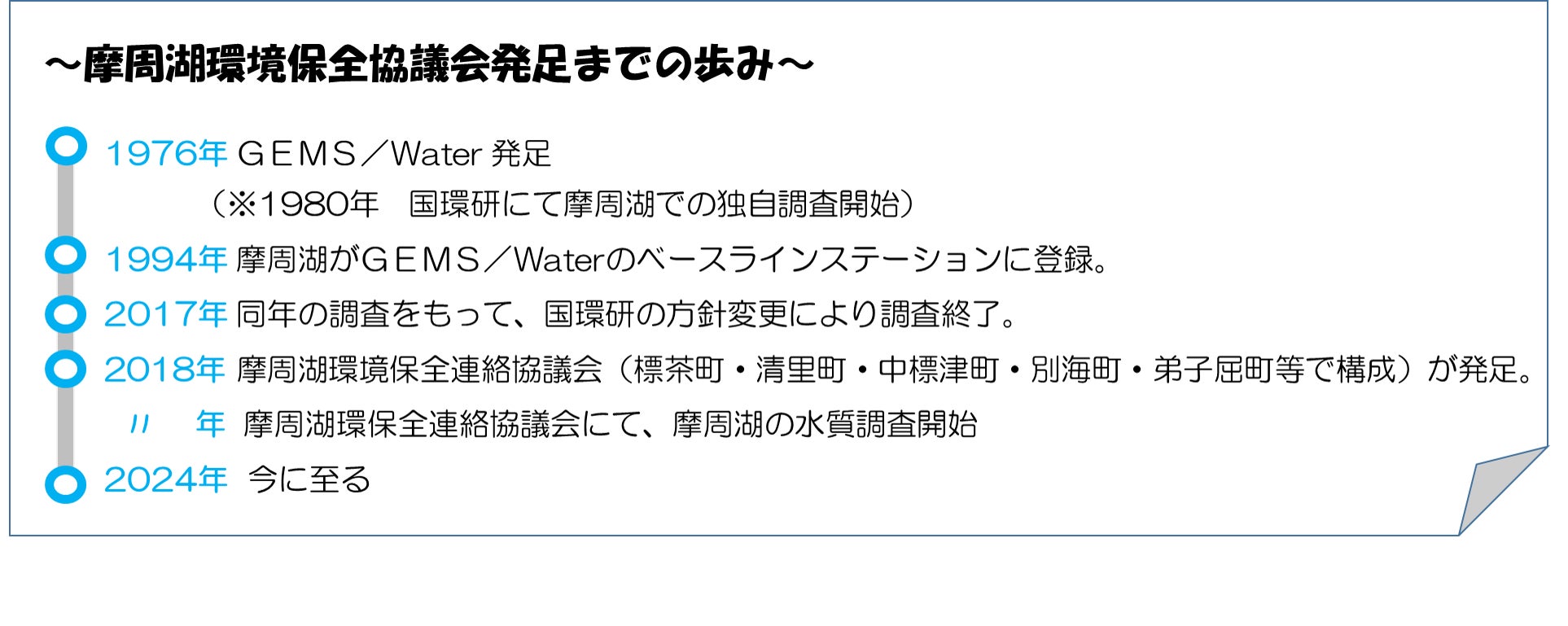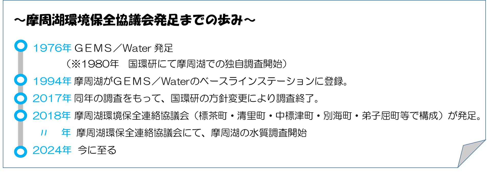私たち、摩周湖環境保全連絡協議会(清里町・標茶町・弟子屈町・中標津町・別海町および関係機関で構成)が協力し、調査規模を縮小しながらも調査を継続しています。
