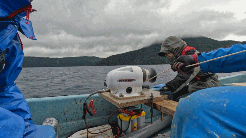 基本的に立ち入りは禁止されていますが、「調査」、特に「摩周湖の水質調査」でのみ許可を受け、毎年、摩周湖に立ち入り、調査を行っています。