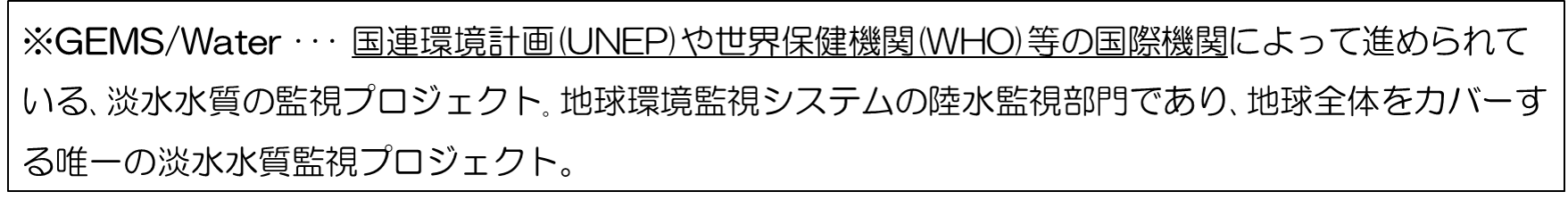 上記のような調査により得られたデータは、GEMS/Waterナショナルセンターへ提出した後、ドイツ本部へ送られ、後にデータベース化されます。これらのデータは、国連機関はもとより各国の研究機関へ無償で提供され、学術研究などに幅広く利用されています。
