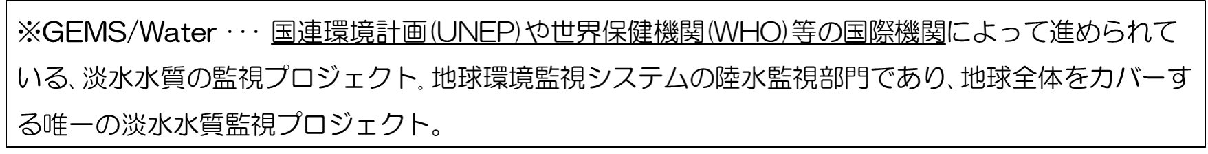 上記のような調査により得られたデータは、GEMS/Waterナショナルセンターへ提出した後、ドイツ本部へ送られ、後にデータベース化されます。これらのデータは、国連機関はもとより各国の研究機関へ無償で提供され、学術研究などに幅広く利用されています。