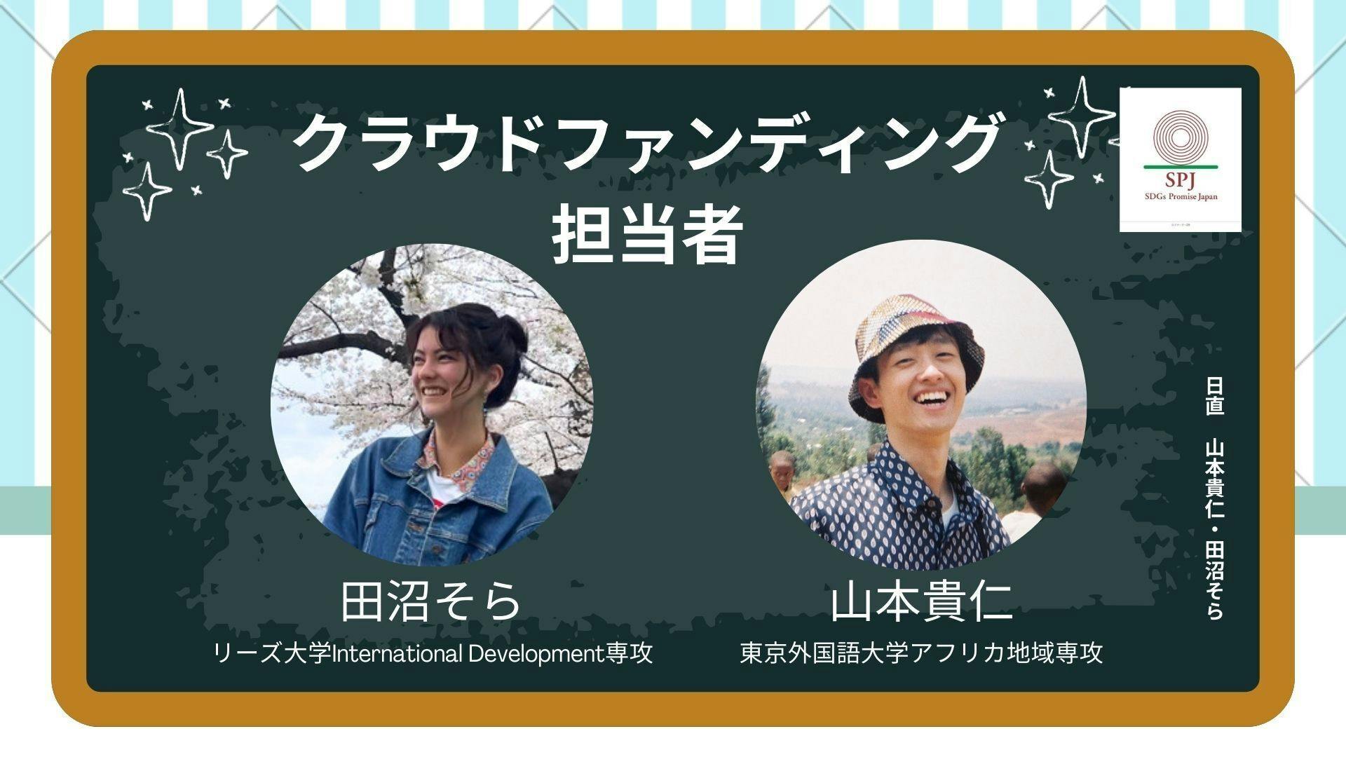 本クラウドファンディング担当は、SPJでインターンをしております東京外国語大学アフリカ地域専攻の山本貴仁とリーズ大学International Development専攻の田沼そらです!ともに今年の夏以降順次ガーナ大学への留学を予定しており、ガーナの人たちと共に、現地の視点を最重要としてプロジェクトを進めていきます!