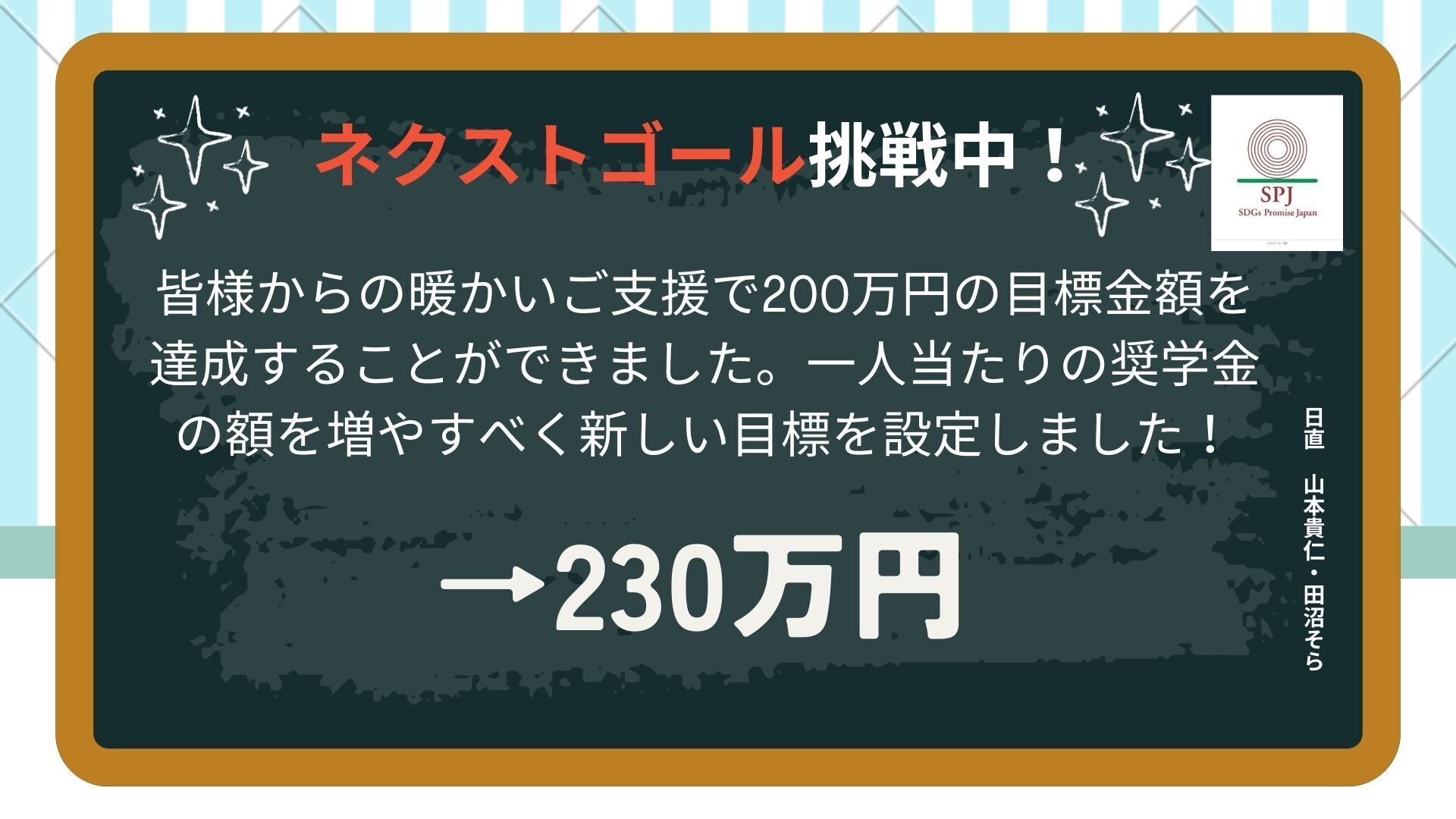 皆様からの暖かいご支援でついに200万円という大きな壁を突破することができました!本当にありがとうございます。